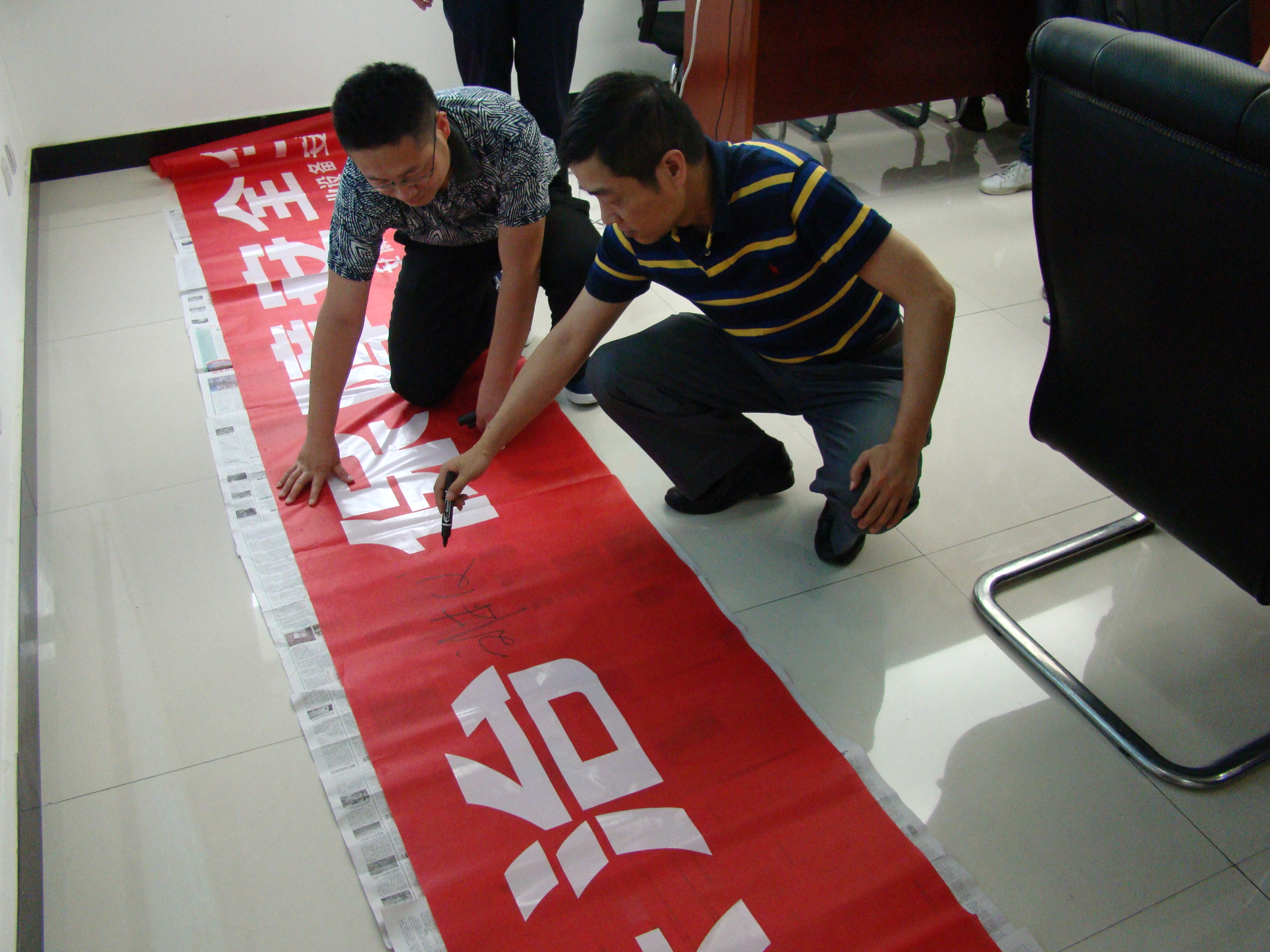 最后,劉安俊同志宣布公司2015年“安全生產(chǎn)月”活動(dòng)正式啟動(dòng)并與參會(huì )人員在橫幅上簽字。