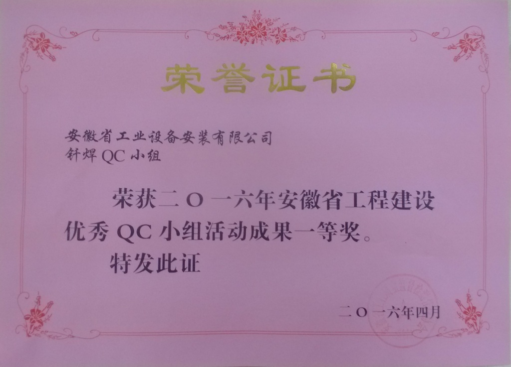 近日,安徽省工程建設優(yōu)秀QC小組活動(dòng)成果交流會(huì )在肥順利舉行。本次活動(dòng)以“萬(wàn)眾創(chuàng )新、扎實(shí)推進(jìn)、分享提升”為主題,由安徽省工程質(zhì)量監督檢測管理協(xié)會(huì )主辦,安徽建工集團有限公司協(xié)辦,來(lái)自全省建筑業(yè)企業(yè)的235支QC小組成員競技一堂。會(huì )上,安徽安裝公司質(zhì)量管理小組題為“提高冷庫制冷系統銅管釬焊的一次合格率”的成果獲得了全省一等獎的好成績(jì)。