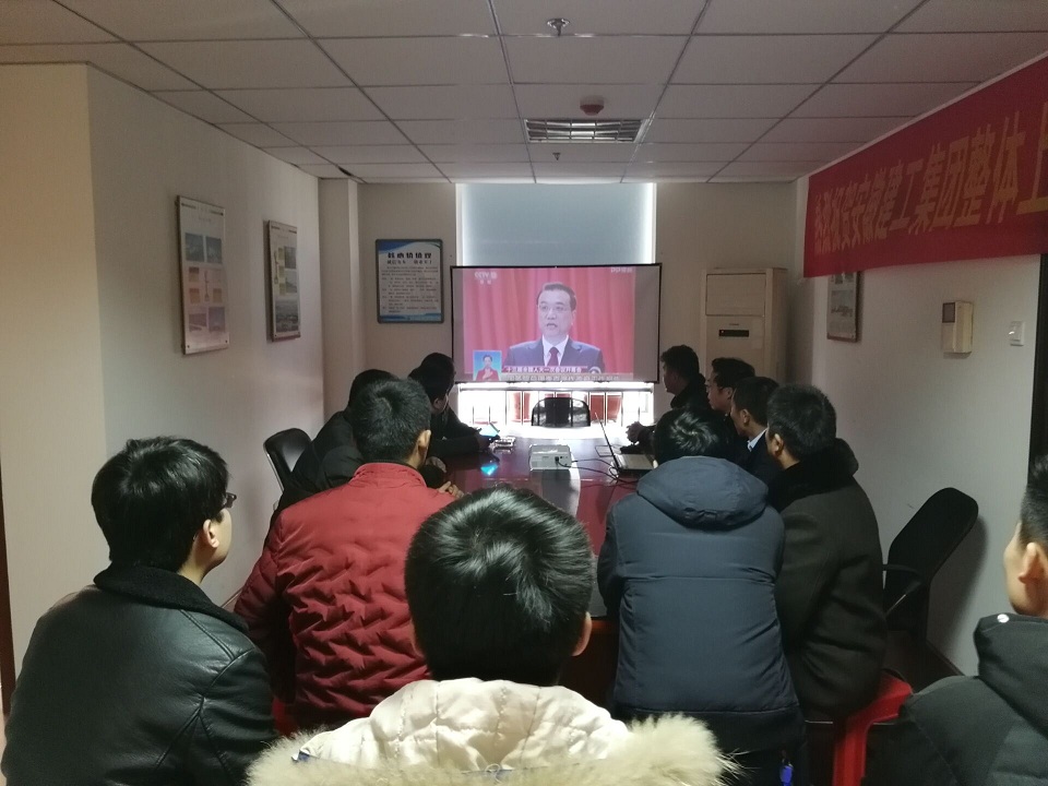3月5日上午,十三屆全國人大一次會(huì )議在人民大會(huì )堂開(kāi)幕,聽(tīng)取國務(wù)院總理李克強作政府工作報告。第四分公司黨支部組織黨員、機關(guān)全體員工、在肥項目經(jīng)理觀(guān)看了這一盛會(huì )。