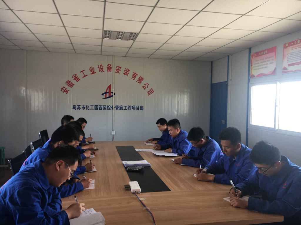 為貫徹落實(shí)省國資委、集團公司和安徽安裝黨委部署要求,6月20日上午,安徽安裝公司新疆烏蘇市西區管廊項目部開(kāi)展“講忠誠、嚴紀律、立政德”專(zhuān)題警示部署會(huì )。