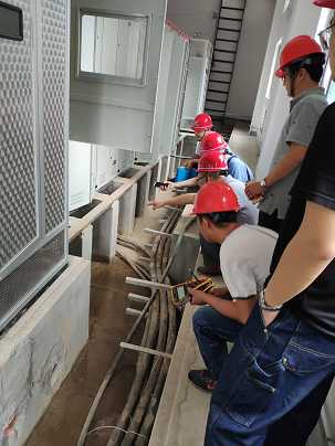 公司檢查組來(lái)到項目部后,首先聽(tīng)取了項目部作的項目運行情況的總體匯報,內容包括項目目標管理責任書(shū)簽訂、項目策劃、進(jìn)度、物資設備、勞務(wù)隊伍、技術(shù)、質(zhì)量、安全、合同、成本、資金管理以及“質(zhì)量月”活動(dòng)的進(jìn)展情況等。接著(zhù)檢查組來(lái)到了施工現場(chǎng)對配電房變壓器、高低壓配電柜及成套設備、室外電纜分支箱、電纜敷設等施工安裝情況的進(jìn)行了檢查,并提出了不足,給予規范要求。