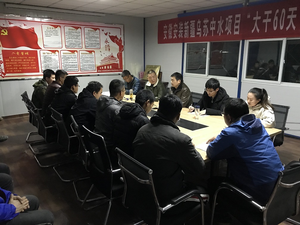 為激發(fā)廣大員工的工作熱情,確保年度各項目標任務(wù)順利完成。安徽安裝新疆烏蘇中水回用項目部從2018年11月1日—12月31日開(kāi)展“大干60天”勞動(dòng)競賽活動(dòng)。11月6日晚,公司紀委書(shū)記、工會(huì )主席李寬旭,項目部全體管理人員和10個(gè)施工班組長(cháng)共30多人參加了“大干60天”勞動(dòng)競賽動(dòng)員會(huì )。