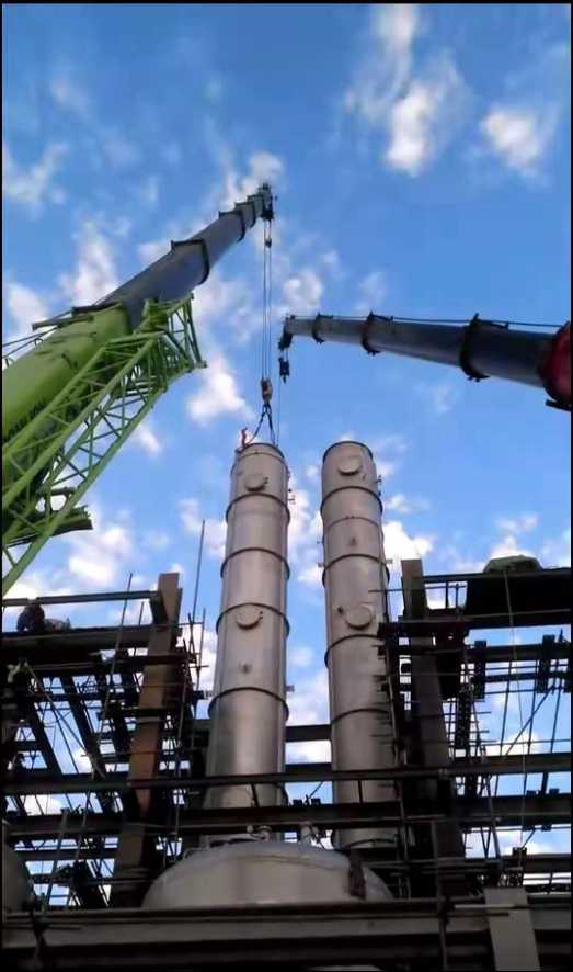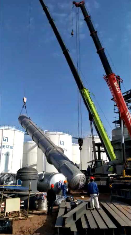 安慶分公司力天項目部完成輕組份塔、純苯酐塔吊裝任務(wù)