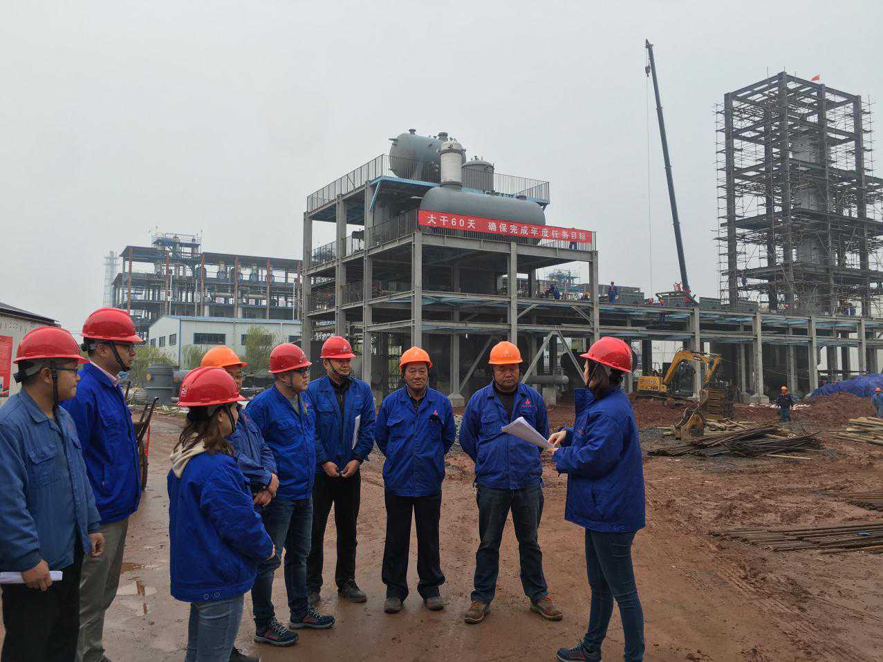 為響應公司“大干60天”勞動(dòng)競賽活動(dòng),把此項活動(dòng)落到實(shí)處,11月15日上午,安慶分公司黨支部書(shū)記、工會(huì )主席、副經(jīng)理劉紅艷攜相關(guān)管理人員冒著(zhù)綿綿細雨前往分公司承建的“安徽力天環(huán)??萍脊煞萦邢薰驹鏊軇┭b置循環(huán)產(chǎn)業(yè)鏈建設項目5萬(wàn)噸/年苯酐裝置項目”和“中石化安慶分公司水污部污水處理場(chǎng)鼓風(fēng)機降噪改造項目”兩個(gè)參賽的工程施工現場(chǎng)督導檢查競賽開(kāi)展情況,以此推進(jìn)勞動(dòng)競賽的實(shí)施,促進(jìn)項目的順利完工。