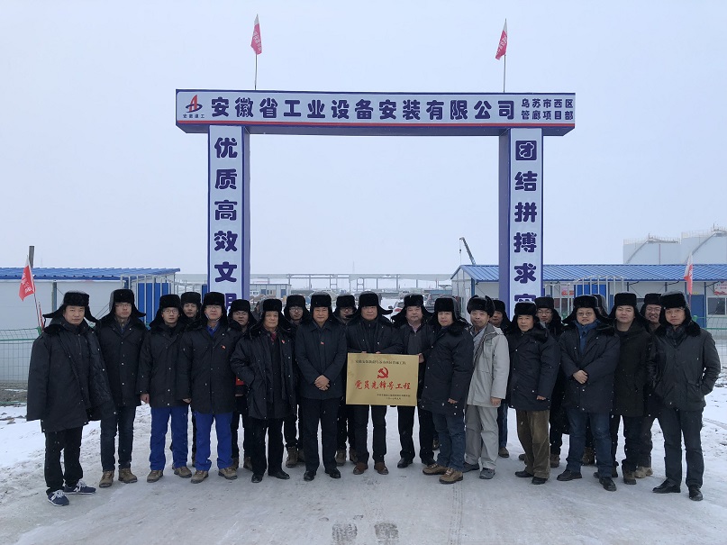 2018年1月12日,集團公司黨委副書(shū)記牛曙東、紀委書(shū)記宋志華、黨委工作部主任徐文聯(lián)一行,在零下20度天氣,冒著(zhù)凜冽的寒風(fēng),迎著(zhù)飛舞的雪花,踏著(zhù)濕滑的道路,蒞臨安徽安裝公司新疆烏蘇市工業(yè)園西區管廊項目驗收“黨員先鋒號”工程創(chuàng )建工作并舉行授牌儀式。集團公司新疆辦事處負責人孫仁發(fā),投資公司黨總支書(shū)記余志剛,安徽路港公司副總經(jīng)理張俊,安徽安裝公司董事長(cháng)、總經(jīng)理、黨委副書(shū)記王軍邦,總經(jīng)理助理、西北分公司經(jīng)理、新疆辦事處主任王軍陪同。創(chuàng )建驗收會(huì )議由徐文聯(lián)主持。