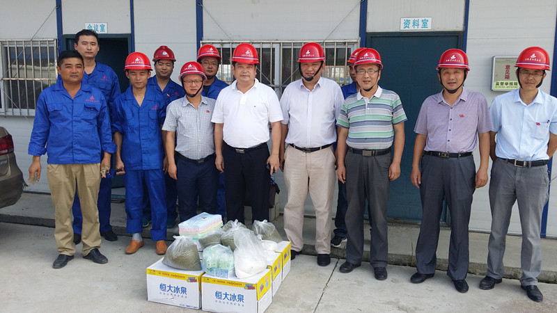 每到一個(gè)項目,公司領(lǐng)導都認真聽(tīng)取了項目部施工現場(chǎng)情況詳細介紹,了解施工進(jìn)度和下一步施工計劃,仔細詢(xún)問(wèn)了現場(chǎng)防暑降溫工作的落實(shí)情況,對在炎熱天氣下仍在一線(xiàn)緊張工作的員工表示親切的問(wèn)候,要求項目部合理安排好作息時(shí)間,避開(kāi)高溫時(shí)的作業(yè),并把綠豆、白糖、毛巾、礦泉水、風(fēng)油精、人丹、十滴水等防暑降溫用品親自送到他們的手中,叮囑大家一定要做好防暑降溫工作,在施工現場(chǎng)多配備防暑降溫飲品及藥品,采取各種有效措施,確保員工的身體健康和施工安全。