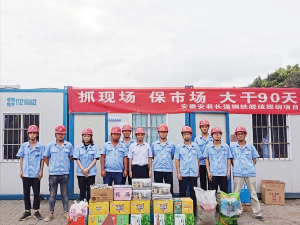 夏日酷暑難耐,高溫導致室外施工作業(yè)困難重重,員工身體負擔較大,公司工會(huì )準備了綠豆、白糖、毛巾、十滴水、香皂、飲料等防暑降溫食品、藥品,專(zhuān)程送到長(cháng)強鋼鐵項目工地。在施工現場(chǎng)公司領(lǐng)導李寬旭書(shū)記親手將一箱箱、一件件物品送到項目班組職工的手中,讓項目所有參戰人員烈日高溫下感受到絲絲清涼。