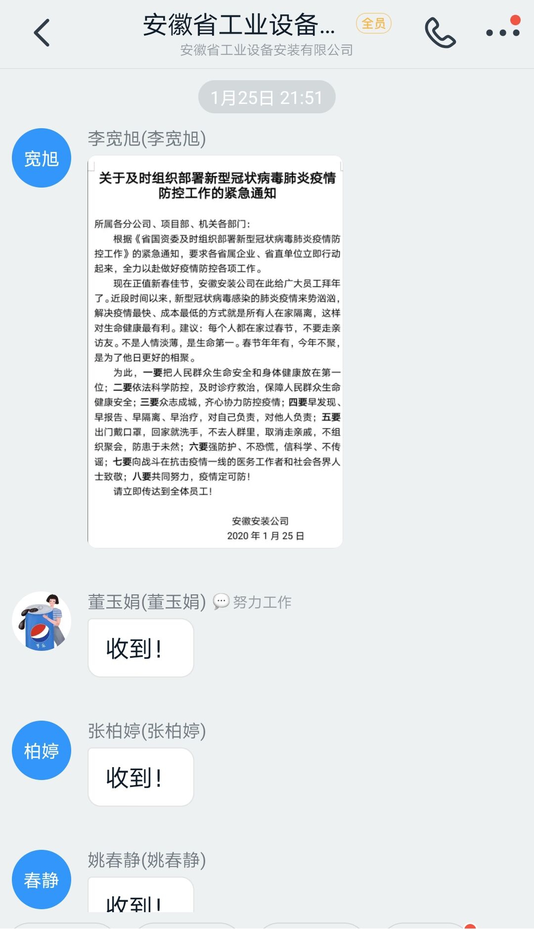 根據《省國資委及時(shí)組織部署新型冠狀病毒肺炎疫情防控工作》的緊急通知,要求各省屬企業(yè)、省直單位立即行動(dòng)起來(lái),全力以赴做好疫情防控各項工作,1月25日發(fā)出緊急通知,部署具體要求,立即傳達到全體員工。