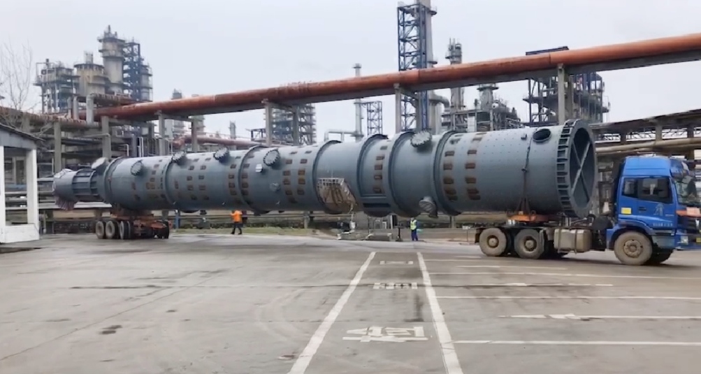 安慶石化項目部后堿洗脫硫塔下段順利完成倒運