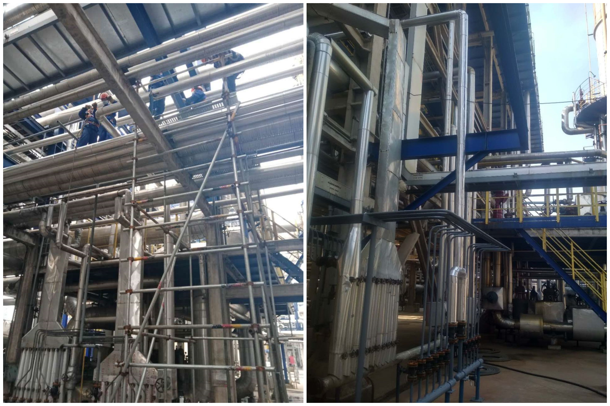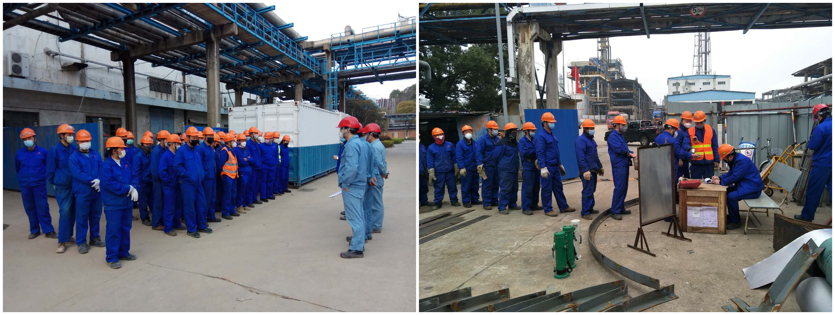 此次復工建設的項目共有五項:Ⅰ、Ⅱ硫磺回收裝置增設煙氣后堿洗流程項目、污染源視頻監控項目、新增機泵密閉排放項目、柴油加氫伴熱系統改造項目、腈綸阻燃纖維生產(chǎn)技術(shù)改造項目。涉及到工藝、設備、電氣、儀表、監控、土建等方面的施工,其共同特點(diǎn)都是以改建、擴建及檢修為主,工期要求緊、交叉及高空作業(yè)多、生產(chǎn)工藝復雜、質(zhì)量要求高,且項目基本都在老廠(chǎng)區內,場(chǎng)地一般都很狹小,存在吊裝作業(yè)難度大、安全風(fēng)險系數高等困難因素。同時(shí)在疫情期間,項目部要為全體項目人員創(chuàng )造良好的、安全的施工環(huán)境,必須做好“防疫、抗疫”防控工作,由此更加使人感覺(jué)時(shí)間緊,任務(wù)重。