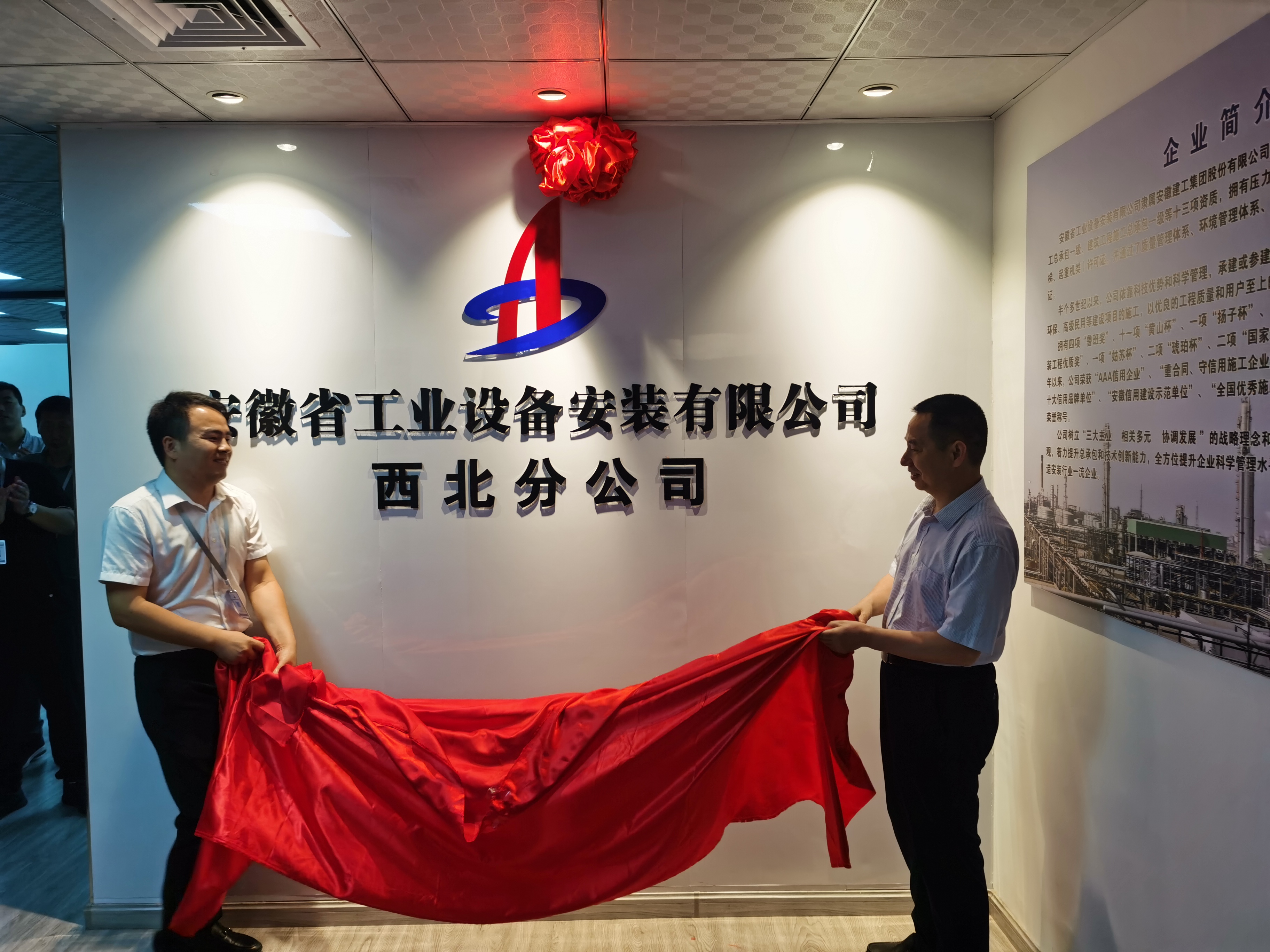 6月8日上午,安徽安裝西北分公司舉行搬遷揭牌儀式,安徽安裝公司黨委書(shū)記、董事長(cháng)胡六中,副總經(jīng)理、新疆烏蘇分公司經(jīng)理王軍一行出席了儀式,本次儀式由西北分公司黨支部書(shū)記江輝主持。