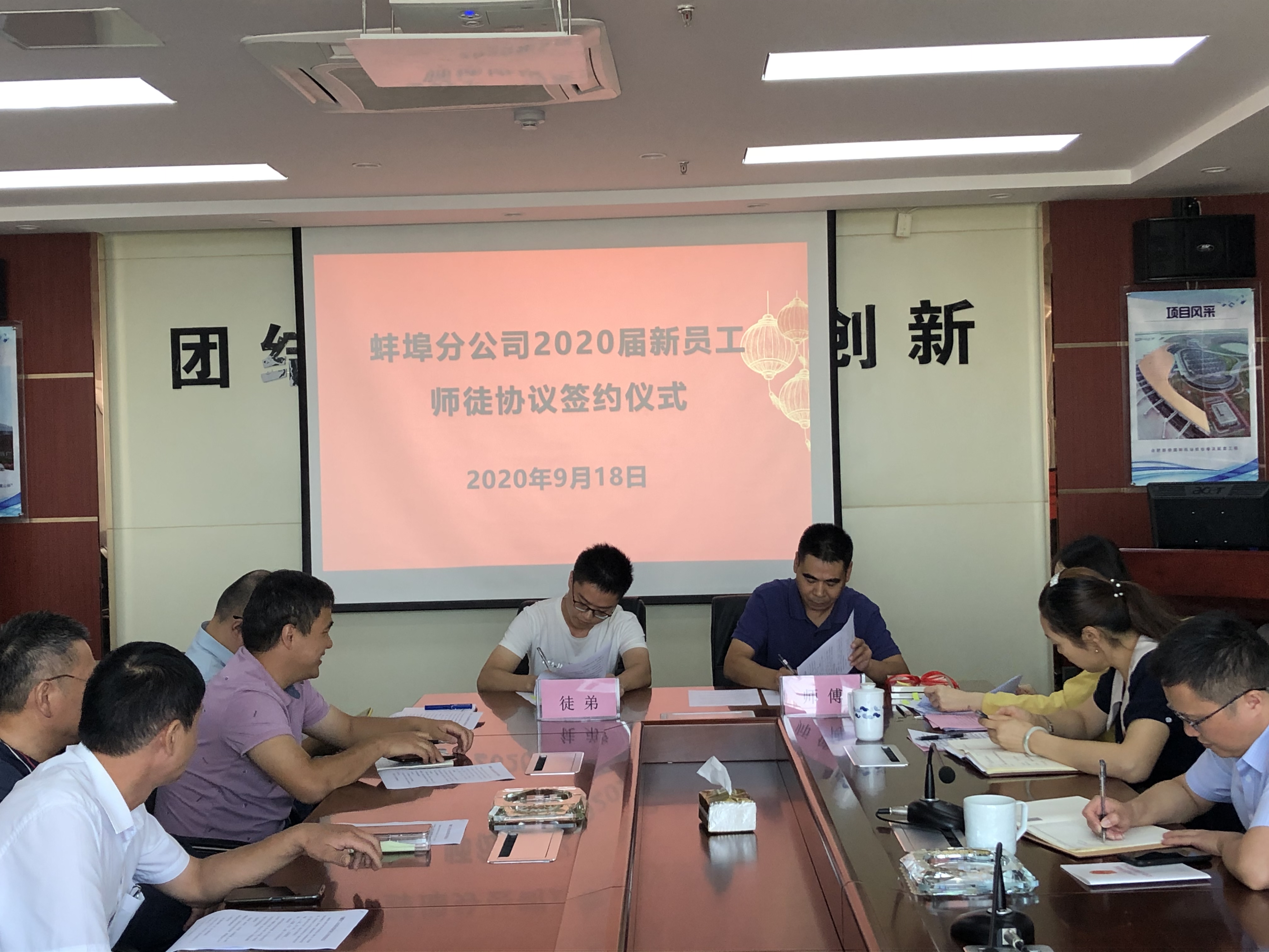 為了幫助新入職大學(xué)生盡快適應企業(yè),熟悉工作,勝任崗位,2020年9月18日上午蚌埠分公司黨支部舉行了“2020屆新員工師徒結對”簽約儀式。分公司班子成員、部門(mén)負責人、項目經(jīng)理、師傅及2020屆新入職大學(xué)生參加了此次會(huì )議。