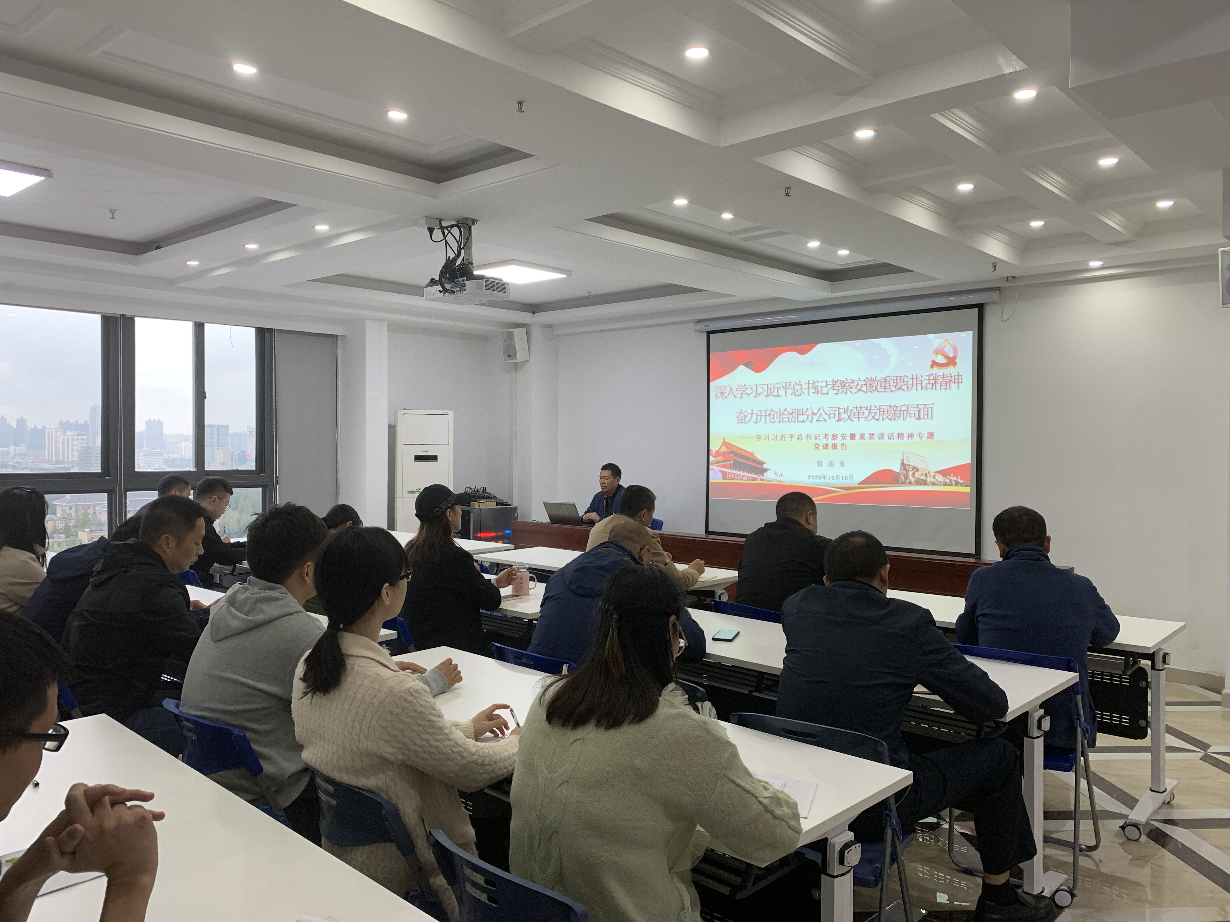 10月16日下午,合肥分公司在公司15樓職工之家舉行學(xué)習貫徹習近平總書(shū)記考察安徽重要講話(huà)精神專(zhuān)題黨課報告會(huì )。合肥分公司黨支部書(shū)記胡迎東在會(huì )上作了題為《深入學(xué)習習近平總書(shū)記考察安徽重要講話(huà)精神 奮力開(kāi)創(chuàng )合肥分公司改革發(fā)展新局面》的黨課報告。合肥分公司黨支部全體黨員、機關(guān)及項目員工共40余人聽(tīng)取了黨課報告,會(huì )議以視頻會(huì )議的方式召開(kāi)。