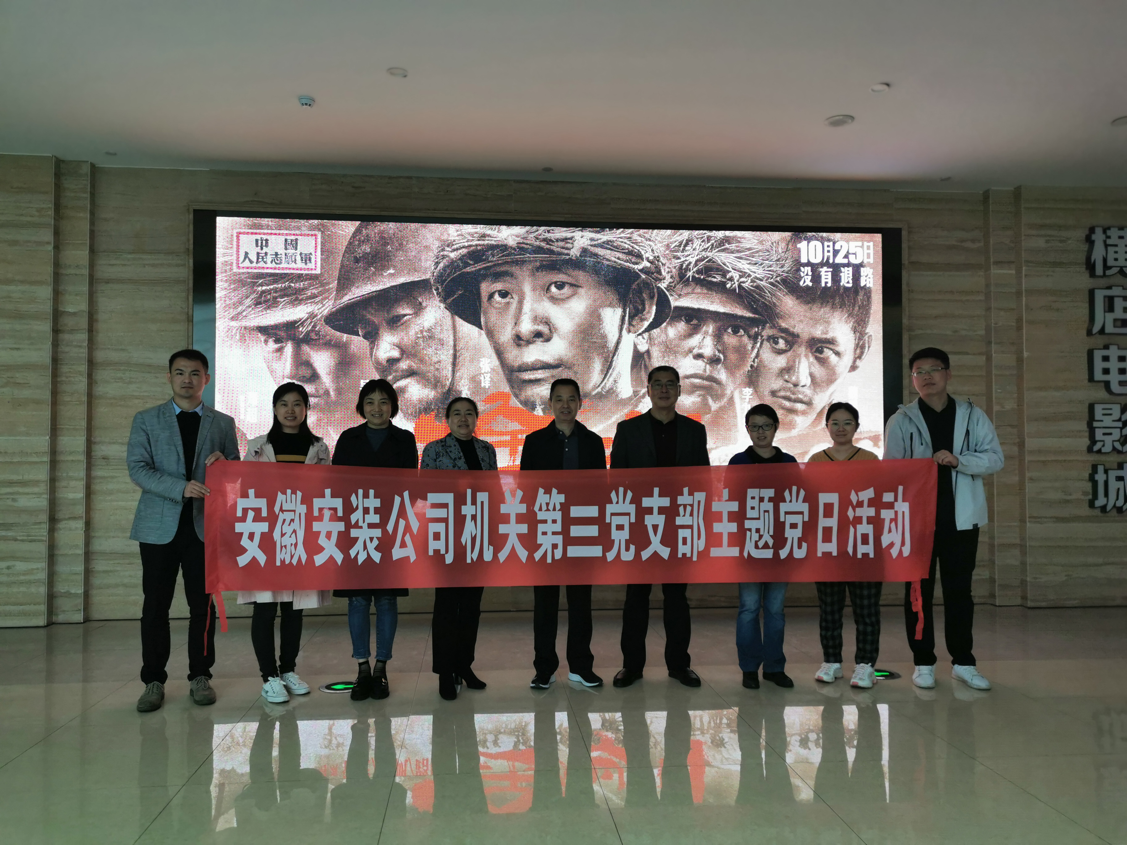 為紀念抗美援朝偉大戰爭,向中國人民志愿軍致敬,20201026日,機關(guān)第三黨支部組織全體黨員觀(guān)看抗美援朝主題電影《金剛川》。公司黨委書(shū)記、董事長(cháng)胡六中,副總經(jīng)理李原及總會(huì )計師張元斌以普通黨員身份參加。