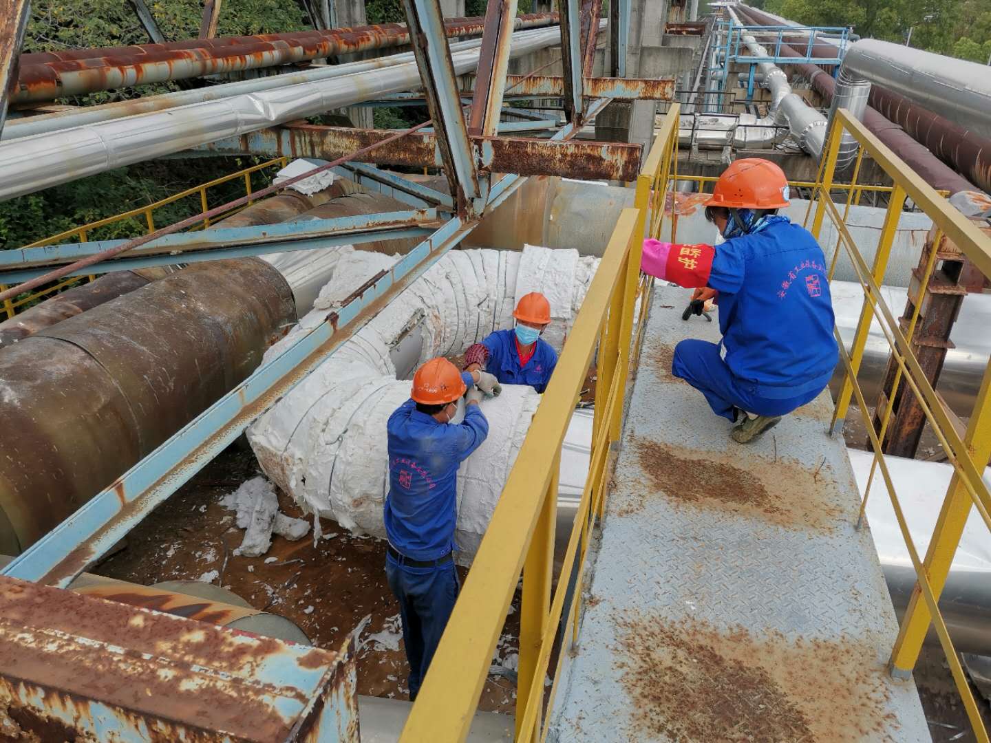 在安慶石化重污油罐尾氣治理項目上,工人們正在進(jìn)行管道保溫施工工作。分段管道的保溫施工按照不同吊裝地點(diǎn)合適程度而定,目前采用地面管道保溫施工,完成后留出焊縫及吊點(diǎn)位置,待吊裝后再及時(shí)進(jìn)行焊縫及吊點(diǎn)保溫施工工作。