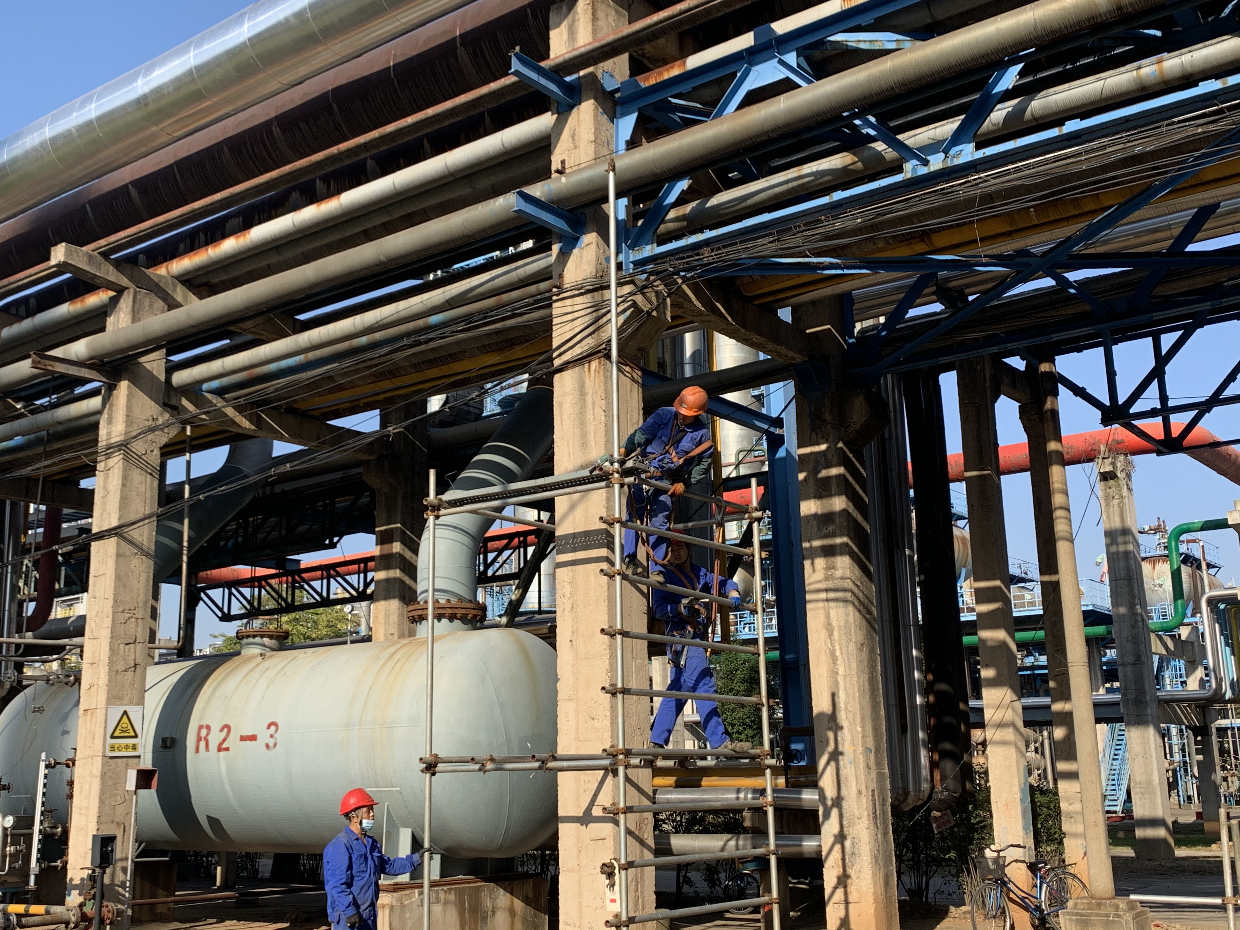 安慶石化低二腈線(xiàn)隱患處理項目在茅青路液化氣罐路口低Ⅱ線(xiàn)分支起至腈綸西圍墻內界區,對原有管道拆除換新。目前施工各項工作均已完成并驗收,相關(guān)作業(yè)物資已經(jīng)清理完畢,做好拆除腳手架前的各項準備,按自上而下先裝者后拆,后裝者先拆,逐步拆除,一步一清。
