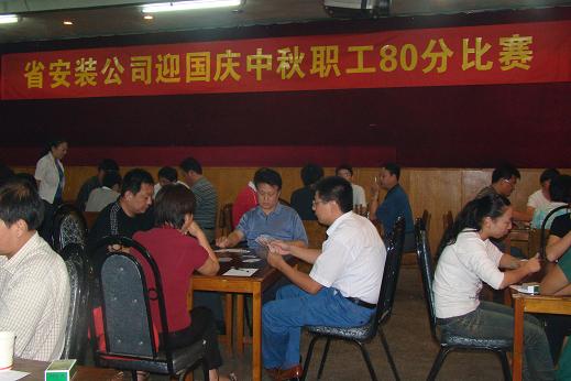 為喜迎國慶、中秋,公司于9月11日下午在職工之家舉辦了80分比賽。通過(guò)角逐,王光忠、朱宗南最終勝出,榮獲第一,趙榮珣、徐光壽榮獲第二,康永軍、何明松榮獲第三。