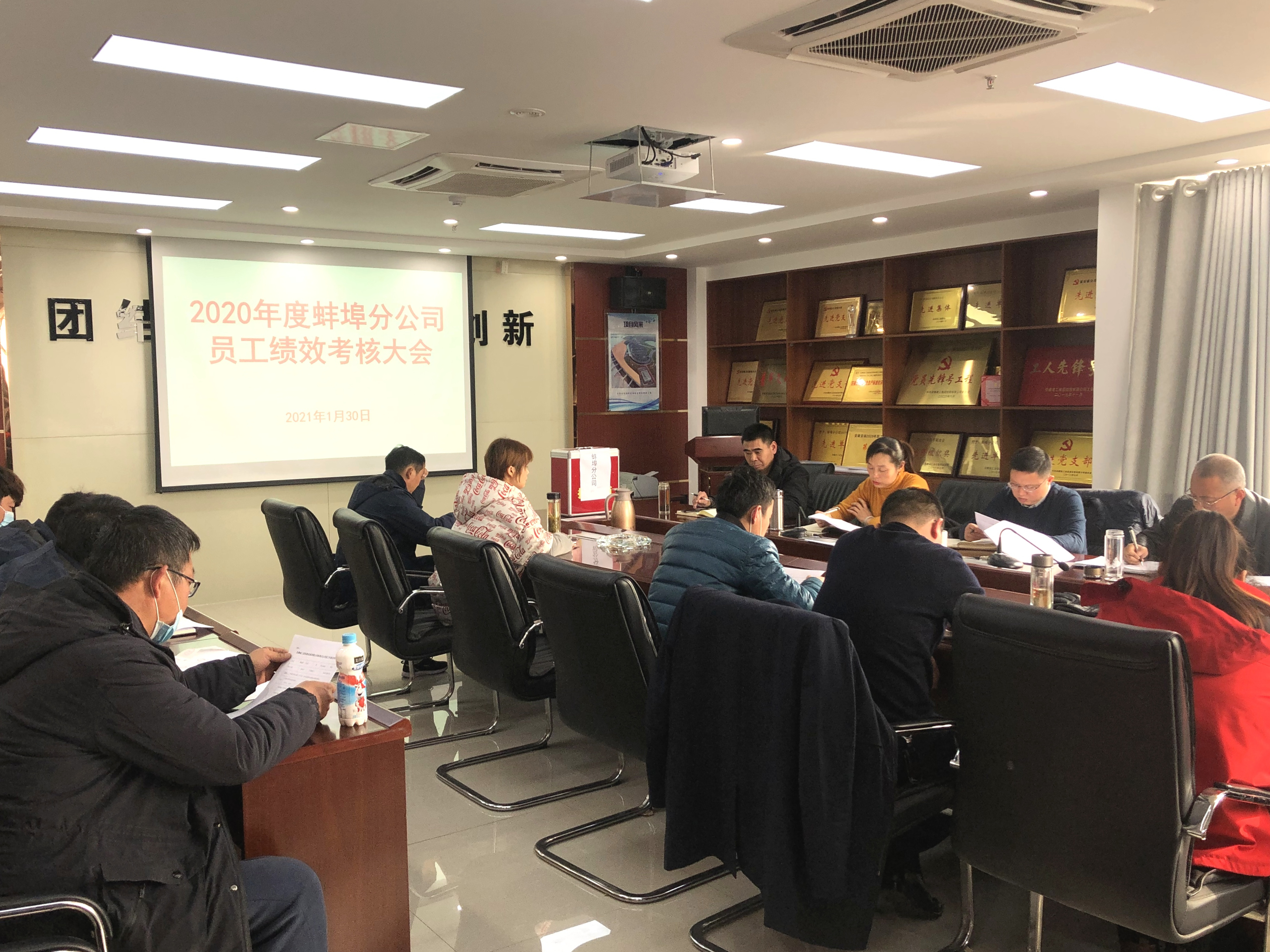 2021年1月30日,蚌埠分公司召開(kāi)2020年度員工績(jì)效考核大會(huì )。分公司全體職工參加。
