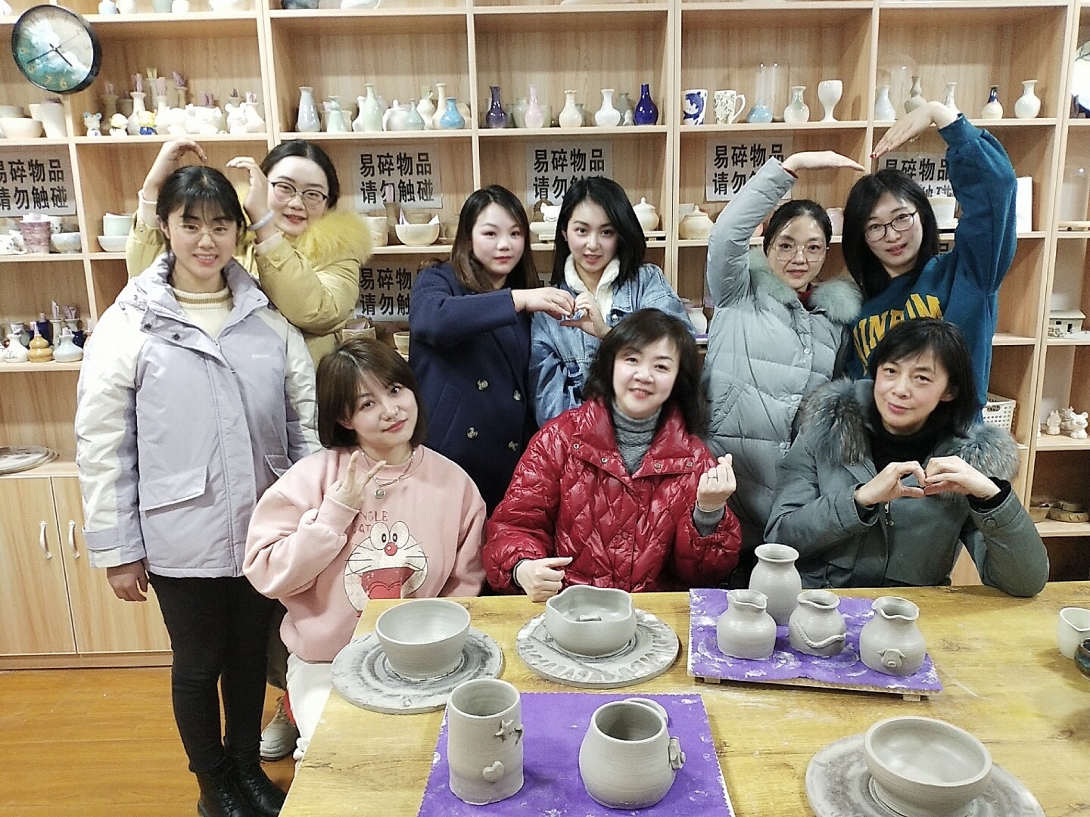 在拍攝創(chuàng )意照片活動(dòng)中,女職工們身穿工作服,手拿慶祝節日圖片,展現女職工風(fēng)采。同時(shí),以手臂為造型,共同組成心型圖案,寓意同心啟程“十四五”,為公司發(fā)展助力。在之后開(kāi)展的手工陶藝活動(dòng)中,女職工們在陶藝制作師的指導下,利用轉動(dòng)的輪盤(pán),動(dòng)手將瓷土拉制成各種形狀的拉胚,并對陶藝進(jìn)行塑型雕花,制作出一件件精美的陶藝作品。