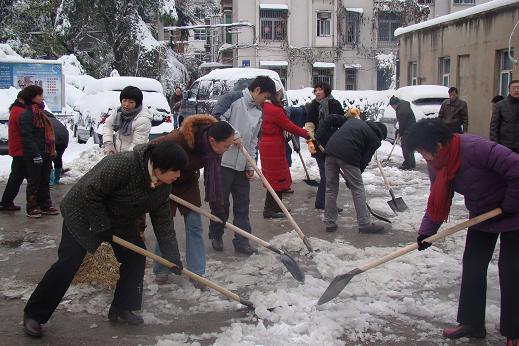 17日一早,在公司領(lǐng)導的親自帶領(lǐng)下,公司機關(guān)全體員工踴躍參與,懷著(zhù)一份熱情,積極鏟雪除冰。經(jīng)過(guò)近兩個(gè)小時(shí)的奮戰,將公司辦公樓及生活區大院的主干道積雪和冰塊鏟掃干凈,確保廣大職工和住戶(hù)的出行安全。