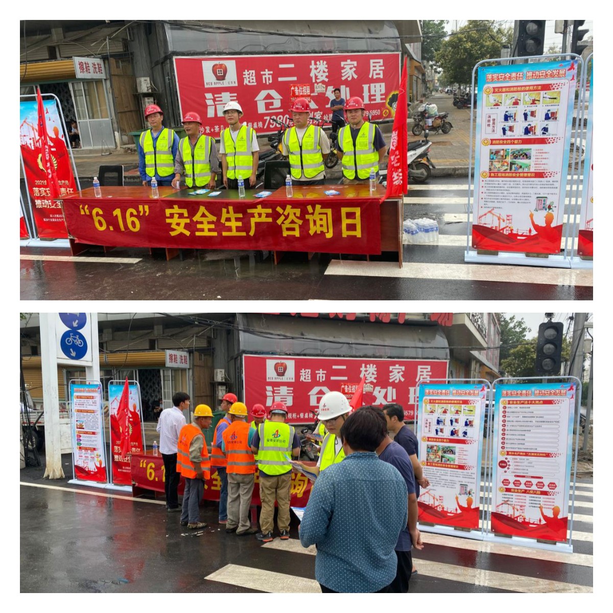 6月16日,項目部圍繞“落實(shí)安全責任,推動(dòng)安全發(fā)展”安全月主題,在靈璧縣迎賓大道設置咨詢(xún)展臺,發(fā)放安全宣傳手冊,近距離宣傳安全生產(chǎn)方針政策、法律法規、應急知識和防災救災常識,開(kāi)展安全宣傳咨詢(xún),進(jìn)一步增強廣大從業(yè)人員和社會(huì )公眾對安全生產(chǎn)的認識和理解。