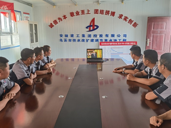 新疆烏蘇市供水改擴建調節蓄水池項目部集中觀(guān)看節目