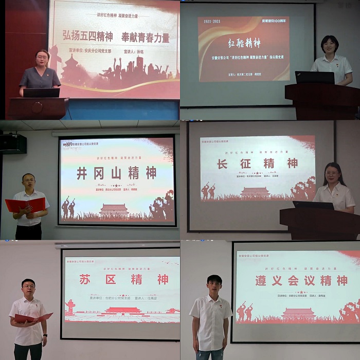 指尖微黨課課堂。為慶祝建黨100周年,促進(jìn)黨史學(xué)習教育方式多樣化,讓廣大基層一線(xiàn)黨員尤其是青年黨員同志廣泛參與到黨史宣講中來(lái),公司黨委依托公司官方微信公眾號重新打造安徽安裝的黨課品牌——“指尖微黨課”課堂,組織開(kāi)展了“講好紅色精神 凝聚奮進(jìn)力量”指尖微黨課活動(dòng)。所屬各黨支部積極推薦黨員同志,尤其是基層一線(xiàn)的黨員同志參與到公司黨委“指尖微黨課宣講員”隊伍中來(lái),此次指尖微黨課課堂每集時(shí)長(cháng)5-8分鐘,短小簡(jiǎn)潔且內涵豐富,以五四精神、紅船精神、井岡山精神、延安精神、航天精神、偉大抗疫精神等人民熔鑄鍛造的偉大紅色精神為主題,講述這些紅色精神背后的感人故事,圍繞每一期紅色精神主題,主講人結合自身工作實(shí)際,談感想談體會(huì )。指尖微黨課旨在變“被動(dòng)學(xué)”為“主動(dòng)講”,變“集中念開(kāi)會(huì )讀”為“隨時(shí)看隨地學(xué)”,解決了公司項目點(diǎn)多面廣,黨員分散不易集中系統學(xué)習的問(wèn)題,現在只要打開(kāi)手機,利用零碎時(shí)間就可以通過(guò)身邊人的宣講更直觀(guān)更生動(dòng)地領(lǐng)略黨史中的奮進(jìn)力量,切實(shí)做到“人人都是宣講員、黨課揣進(jìn)口袋中”。