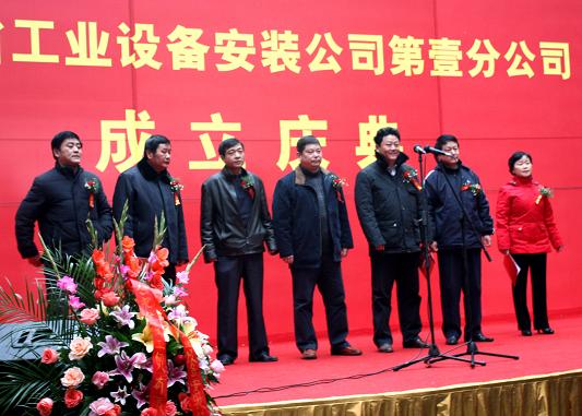 2010年元月10日,萬(wàn)物萌生,瑞雪飄揚。經(jīng)過(guò)長(cháng)時(shí)間的醞釀和籌備,安徽省工業(yè)設備安裝公司第壹分公司終于揭牌成立。公司總經(jīng)理王軍邦、黨委書(shū)記戴樹(shù)明攜公司黨政領(lǐng)導集體、合肥地區項目經(jīng)理、分公司經(jīng)理、機關(guān)部門(mén)負責人出席慶典,戴樹(shù)明書(shū)記主持儀式。