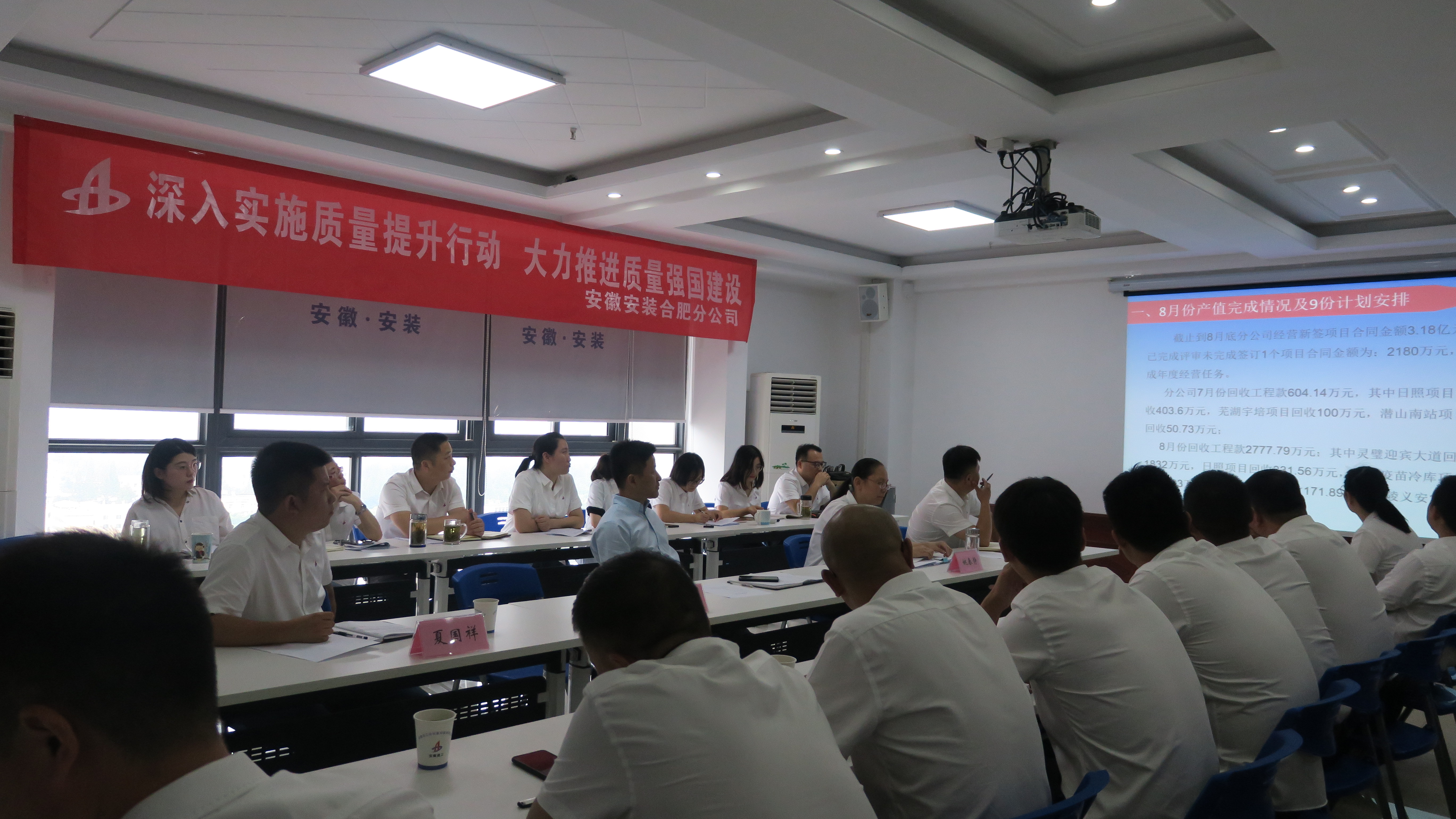 9月4日下午,合肥分公司召開(kāi)了2021年9 月份生產(chǎn)、安全、經(jīng)營(yíng)暨“質(zhì)量月”動(dòng)員會(huì )議。分公司領(lǐng)導班子成員、所屬各項目經(jīng)理、機關(guān)全體員工40余人參會(huì ),會(huì )議由工程管理部副主任馮慶捻主持。