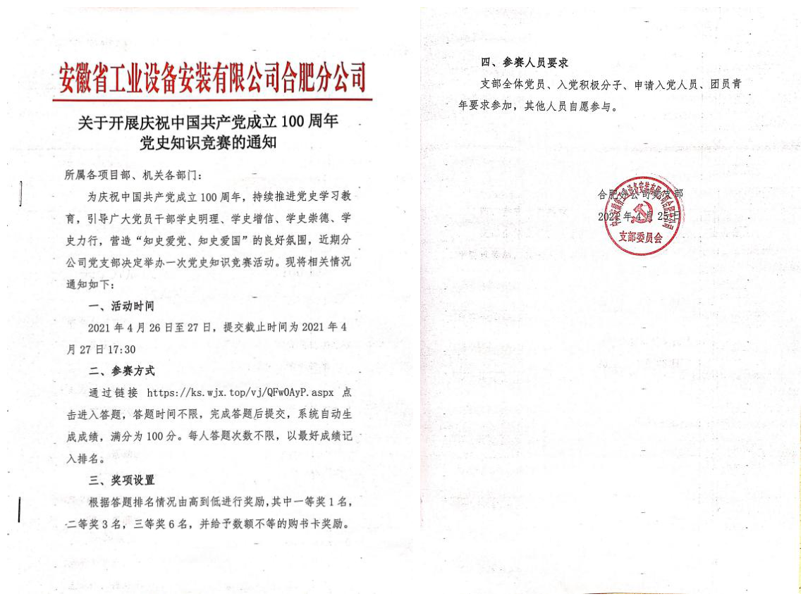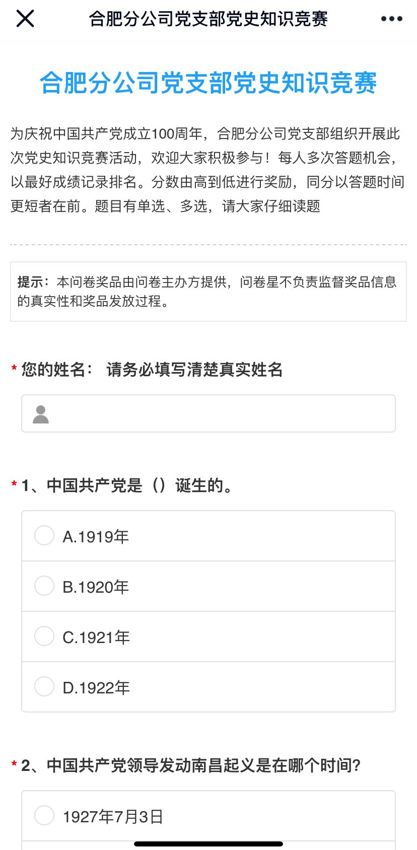 合肥分公司黨支部組織開(kāi)展黨史學(xué)習教育知識競賽活動(dòng)