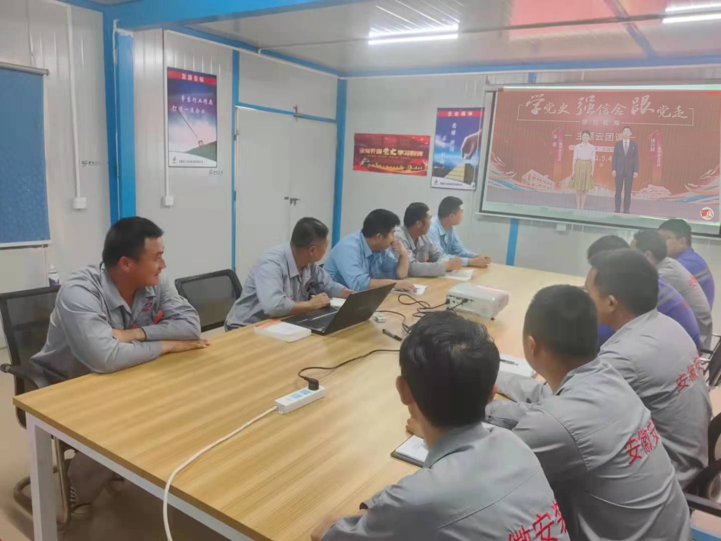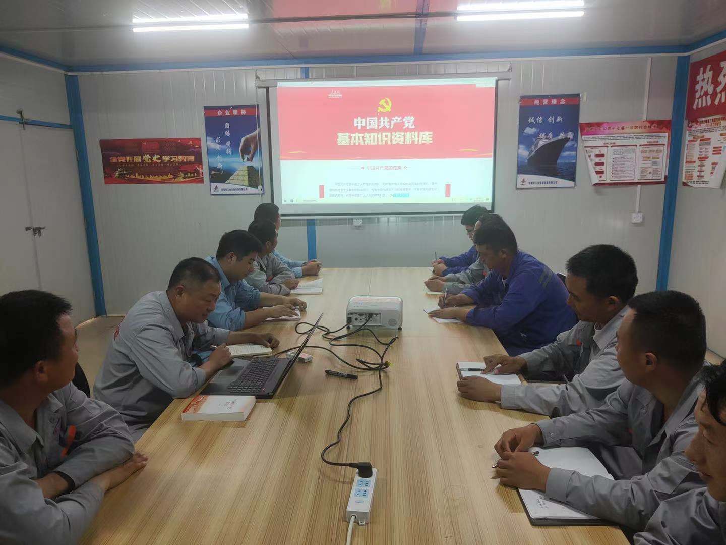項目部積極響應公司黨史學(xué)習教育要求,促進(jìn)黨史學(xué)習充分融入生產(chǎn)一線(xiàn),營(yíng)造出濃厚的“學(xué)黨史、促生產(chǎn)”的良好氛圍。5月1日,項目部開(kāi)展了黨史學(xué)習教育交流會(huì ),會(huì )上項目部黨員皮軍同志帶領(lǐng)大家集中學(xué)習了《中國共產(chǎn)黨基本知識》并開(kāi)展了黨史學(xué)習交流討論。5月4日,項目部組織團員青年通過(guò)線(xiàn)上觀(guān)看節目的方式觀(guān)看了由共青團中央、全國學(xué)聯(lián)舉辦的“學(xué)黨史、強信念、跟黨走”大型網(wǎng)絡(luò )直播主題云團課學(xué)習活動(dòng),在歌聲中感受激情燃燒的光輝歲月,在影像影視中見(jiàn)證時(shí)代的發(fā)展、歷史的變遷。