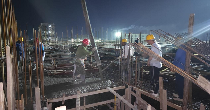 “端午”期間,壹石通項目職工堅守一線(xiàn),為確保節點(diǎn)計劃如期完成,掀起大干浪潮。為保證壹石通項目氫氧化鎂車(chē)間設備進(jìn)場(chǎng),項目部提前策劃、精心組織,加大人材機的投入力度,明確施工現場(chǎng)的重難點(diǎn),確保目標任務(wù)的落實(shí)。目前,主要工作為氫氧化鎂車(chē)間一與綜合車(chē)間的主體結構,保證節點(diǎn)目標,生產(chǎn)投入機械設備3臺,勞務(wù)人員30名。