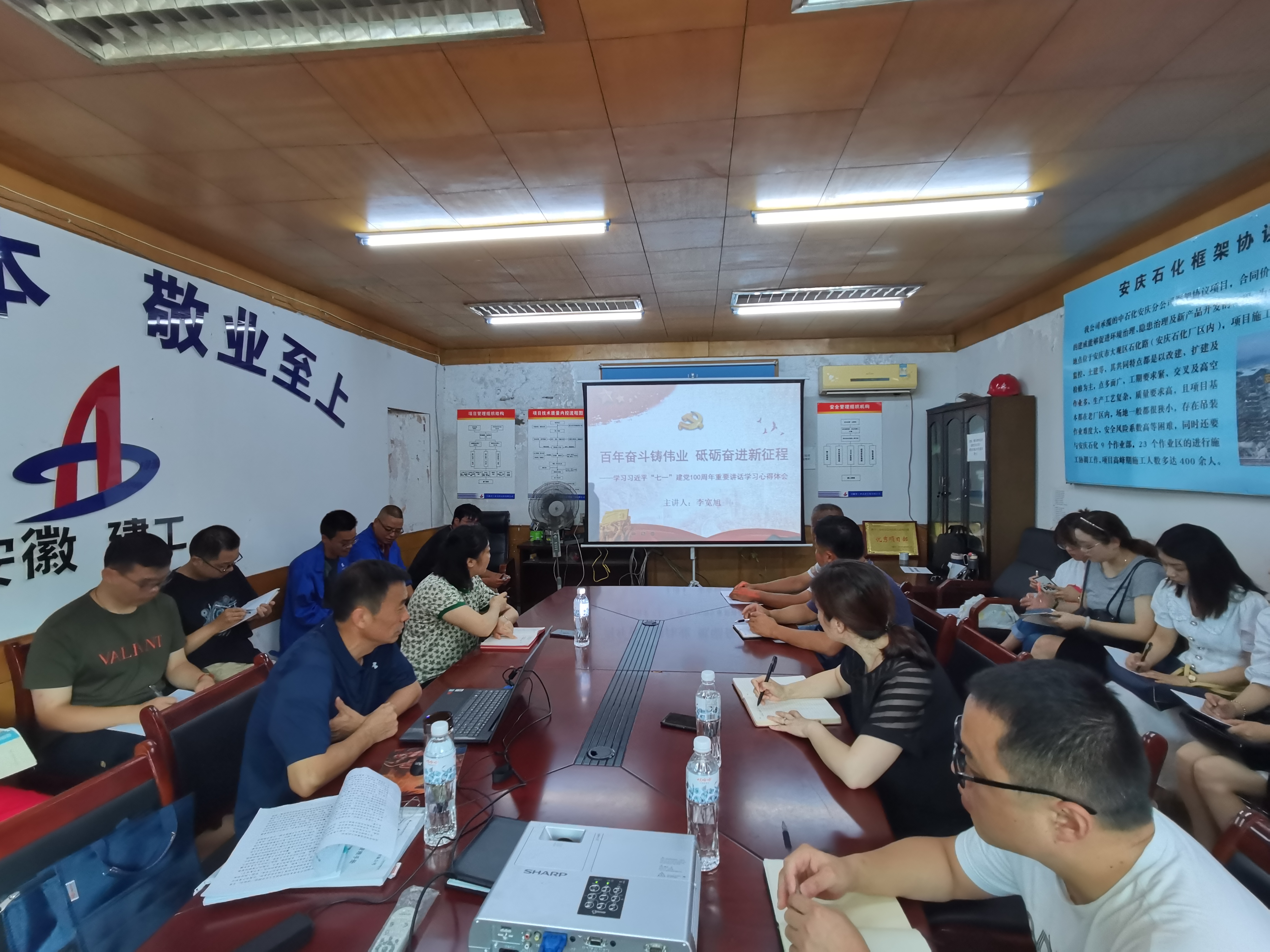 為進(jìn)一步加強對習近平總書(shū)記在慶祝中國共產(chǎn)黨成立100周年大會(huì )上的重要講話(huà)精神的學(xué)習,深入解讀習總書(shū)記提出的“偉大建黨精神”,7月16日上午,公司紀委書(shū)記、工會(huì )主席李寬旭以“百年奮斗鑄偉業(yè) 砥礪奮進(jìn)新征程”為題,為安慶分公司全體員工講授了一堂內容豐富的專(zhuān)題黨課。