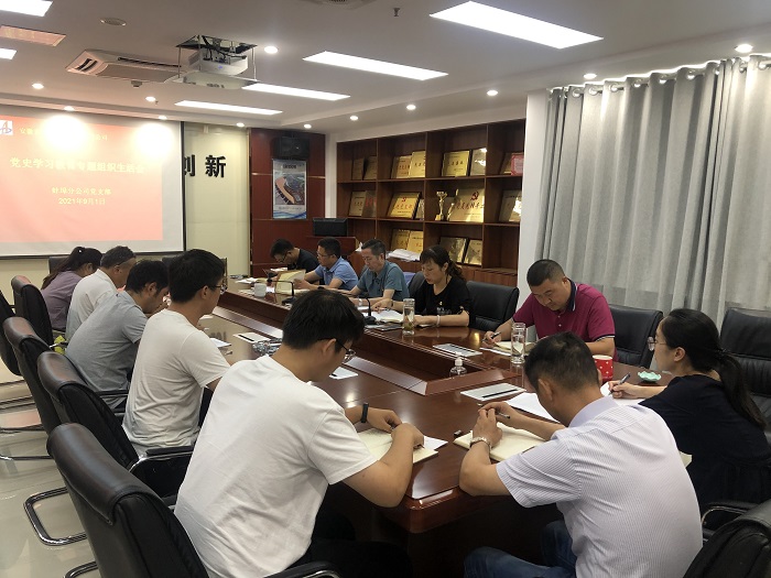 9月1日下午蚌埠分公司黨支部召開(kāi)黨史學(xué)習教育專(zhuān)題組織生活會(huì )。公司黨委委員、副總經(jīng)理趙伯平以普通黨員身份出席會(huì )議,支部班子成員、全體黨員參會(huì ),會(huì )議由黨支部書(shū)記程茂麗主持。
