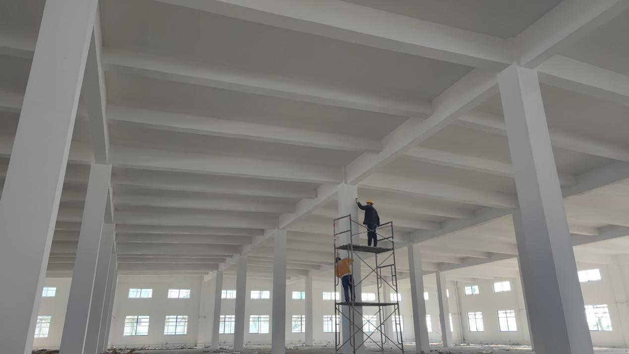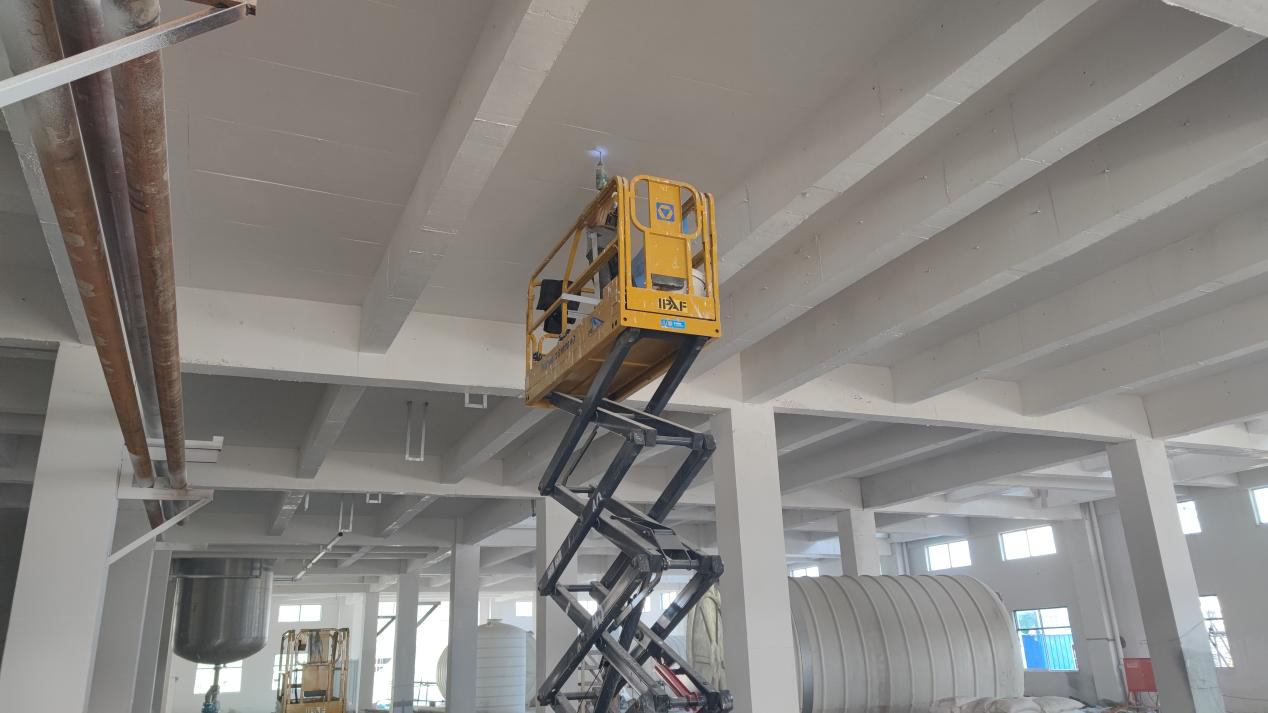 氫氧化鎂車(chē)間工人進(jìn)行消防支架安裝工作