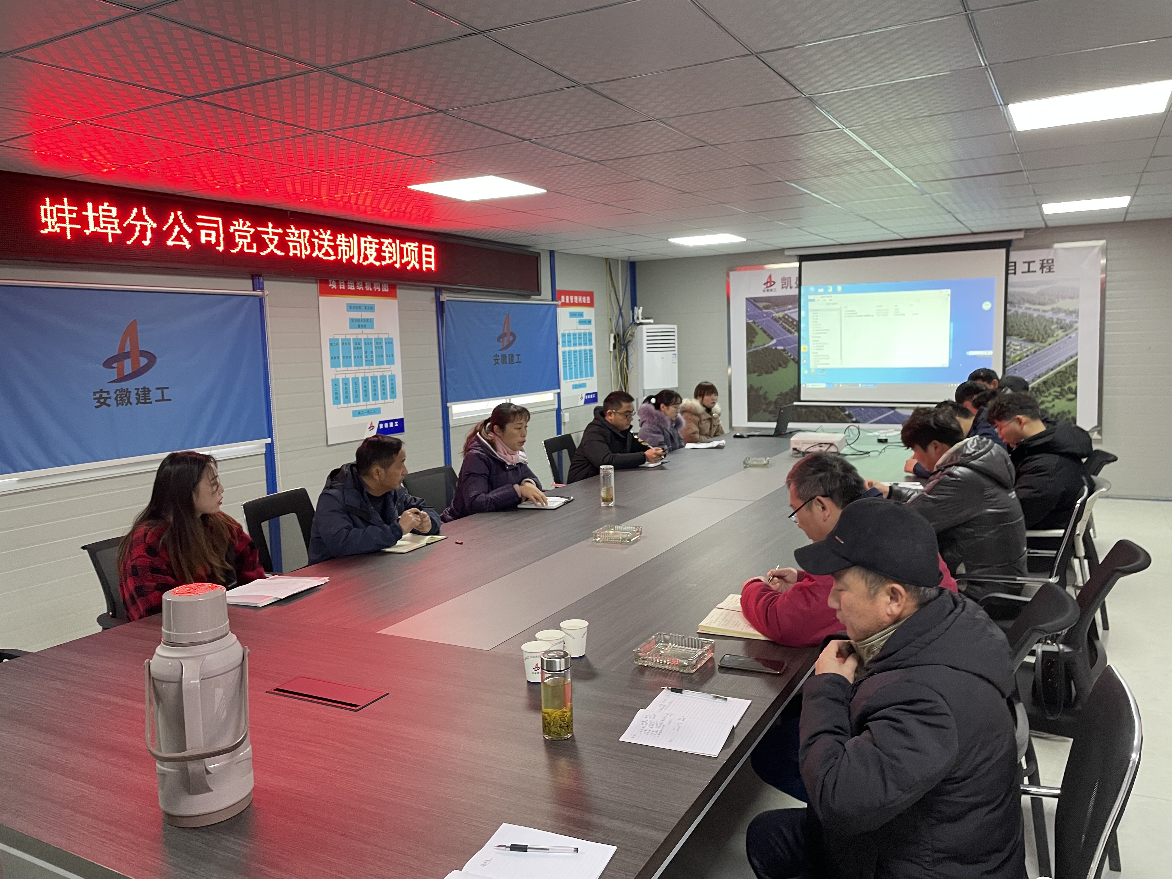 2月15日,蚌埠分公司黨支部組織開(kāi)展了“送制度下項目”活動(dòng)。由分公司各部門(mén)負責人組成的宣貫小組在黨支部書(shū)記程茂麗帶領(lǐng)下,分別赴凱盛項目部、臨港項目部召開(kāi)專(zhuān)題宣貫會(huì )。
