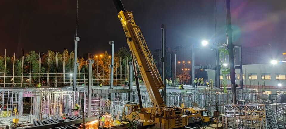 “開(kāi)局即是決戰,起步就要沖刺”,在項目現場(chǎng),我們能感受到的是項目全體職工心往一處想、勁往一處使的勇氣與信心。截至11月16日,該項目已完成二層樓板壓型鋼板安裝,二層樓板混凝土澆筑完成50%,二層墻板繼續作業(yè),墻體內水電預埋已經(jīng)穿插開(kāi)始進(jìn)行。一層墻板內水電預埋基本完成,開(kāi)始一層吊頂內水電暖通安裝工作。