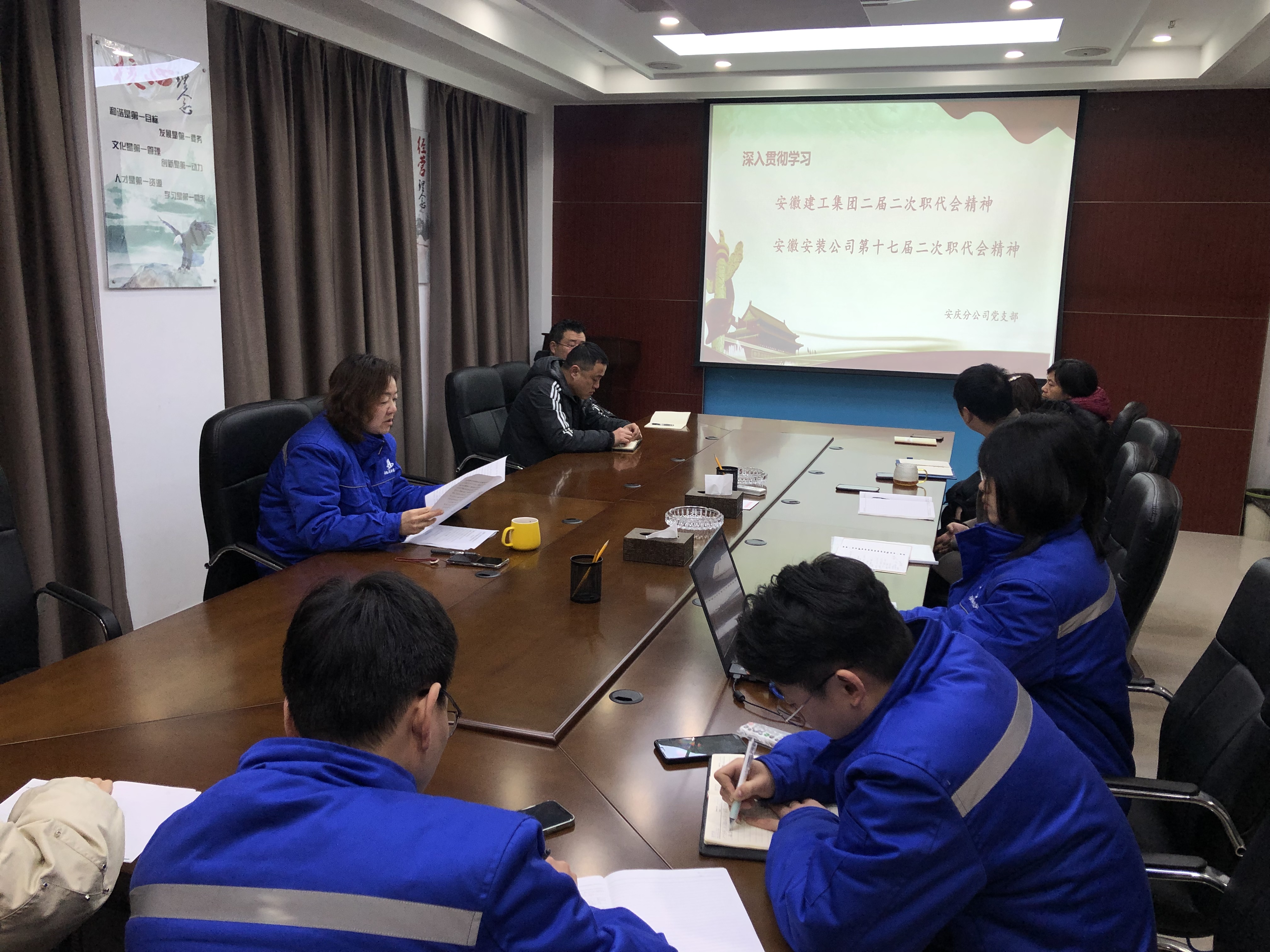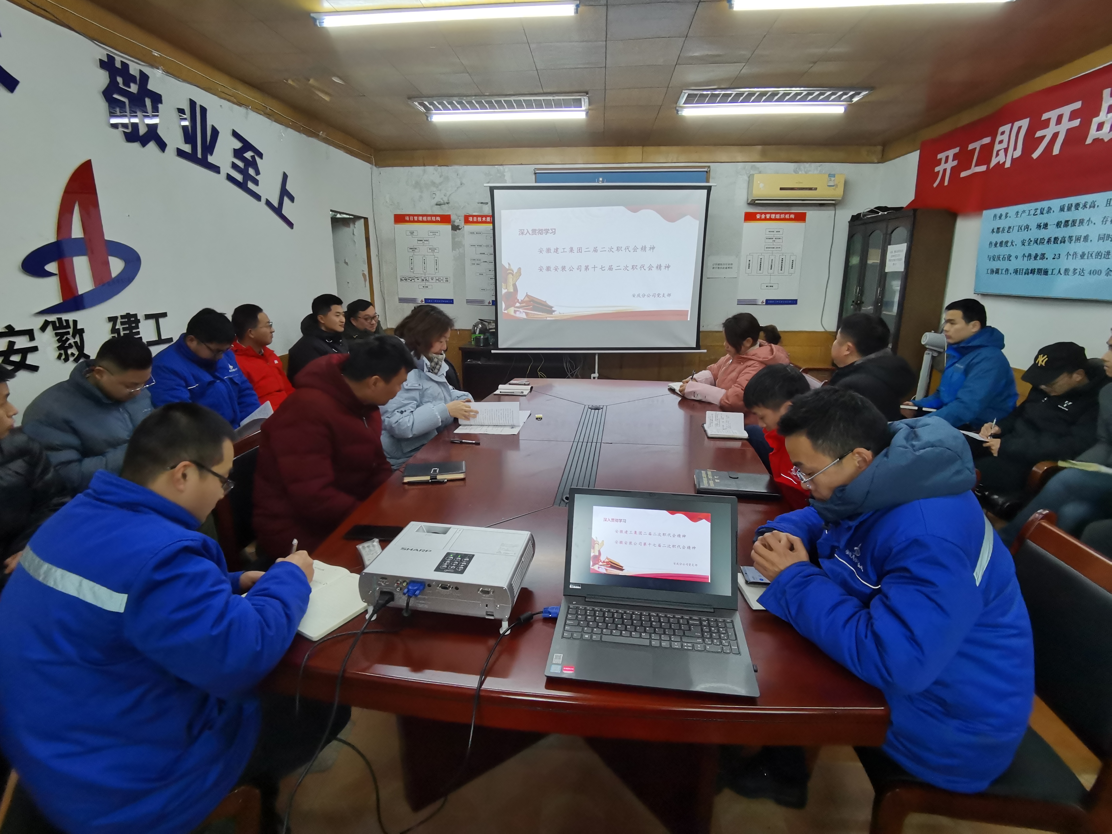 集團公司、公司兩級職代會(huì )相繼召開(kāi)之后,2月9日,安慶分公司結合實(shí)際,迅速在分公司機關(guān)和項目部分別組織召開(kāi)了專(zhuān)題學(xué)習會(huì ),積極開(kāi)展學(xué)習宣貫兩級職代會(huì )精神。會(huì )議由分公司黨支部書(shū)記劉紅艷主持。