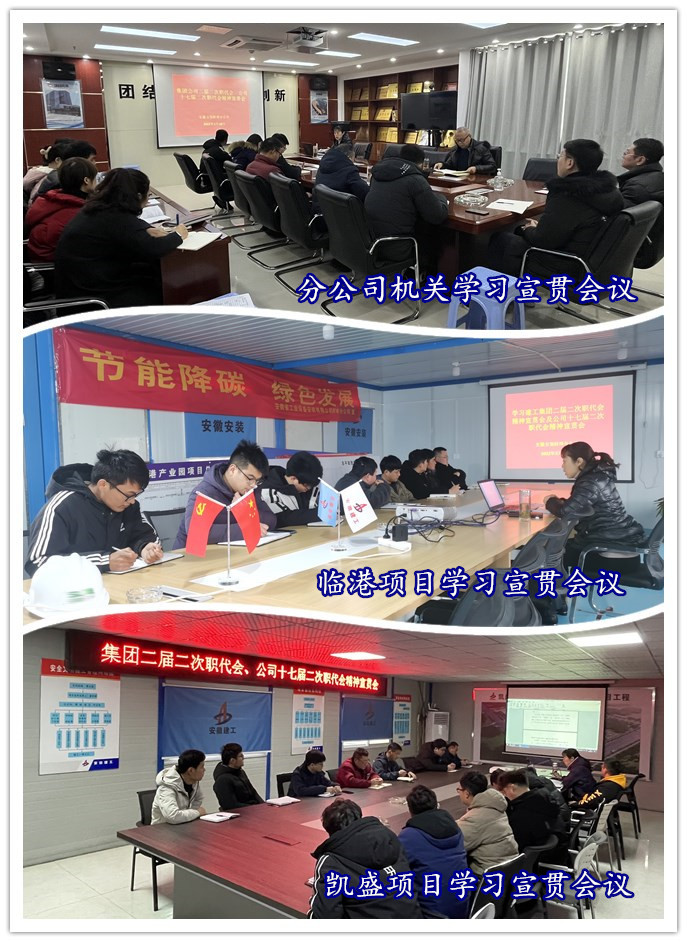 2月10日—11日,在分公司機關(guān)和各在建項目一線(xiàn)召開(kāi)兩級職代會(huì )精神專(zhuān)題宣貫會(huì )。會(huì )議由分公司黨支部書(shū)記程茂麗主持。會(huì )上,程茂麗首先傳達了集團公司黨委書(shū)記、董事長(cháng)趙時(shí)運在集團二屆二次職代會(huì )暨2022年度工作會(huì )議作的題為《奮力譜寫(xiě)安徽建工高質(zhì)量發(fā)展新篇章 以?xún)?yōu)異成績(jì)迎接黨的二十大勝利召開(kāi)》的講話(huà)和集團黨委副書(shū)記、總經(jīng)理、董事劉家靜作的題為《拉高標桿、爭創(chuàng )一流 不斷實(shí)現安徽建工更高質(zhì)量更可持續發(fā)展》的工作報告;隨后又帶領(lǐng)大家深入解讀了公司黨委書(shū)記、董事長(cháng)胡六中在公司十七屆二次職代會(huì )上所作的《守正創(chuàng )新 實(shí)干篤行 強基固本 競進(jìn)提質(zhì) 以趕考姿態(tài)答好安徽安裝高質(zhì)量發(fā)展新答卷》的報告及《黨建領(lǐng)航聚合力 深度融合強保障 以高質(zhì)量黨建領(lǐng)航安徽安裝高質(zhì)量發(fā)展》的講話(huà)。