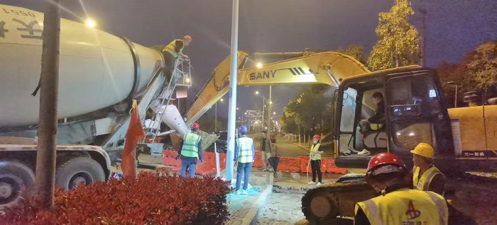 花園大道項目部為保證了白天道路正常通行不受影響,項目全體員工晚間加班加點(diǎn)進(jìn)行過(guò)路段管道施工