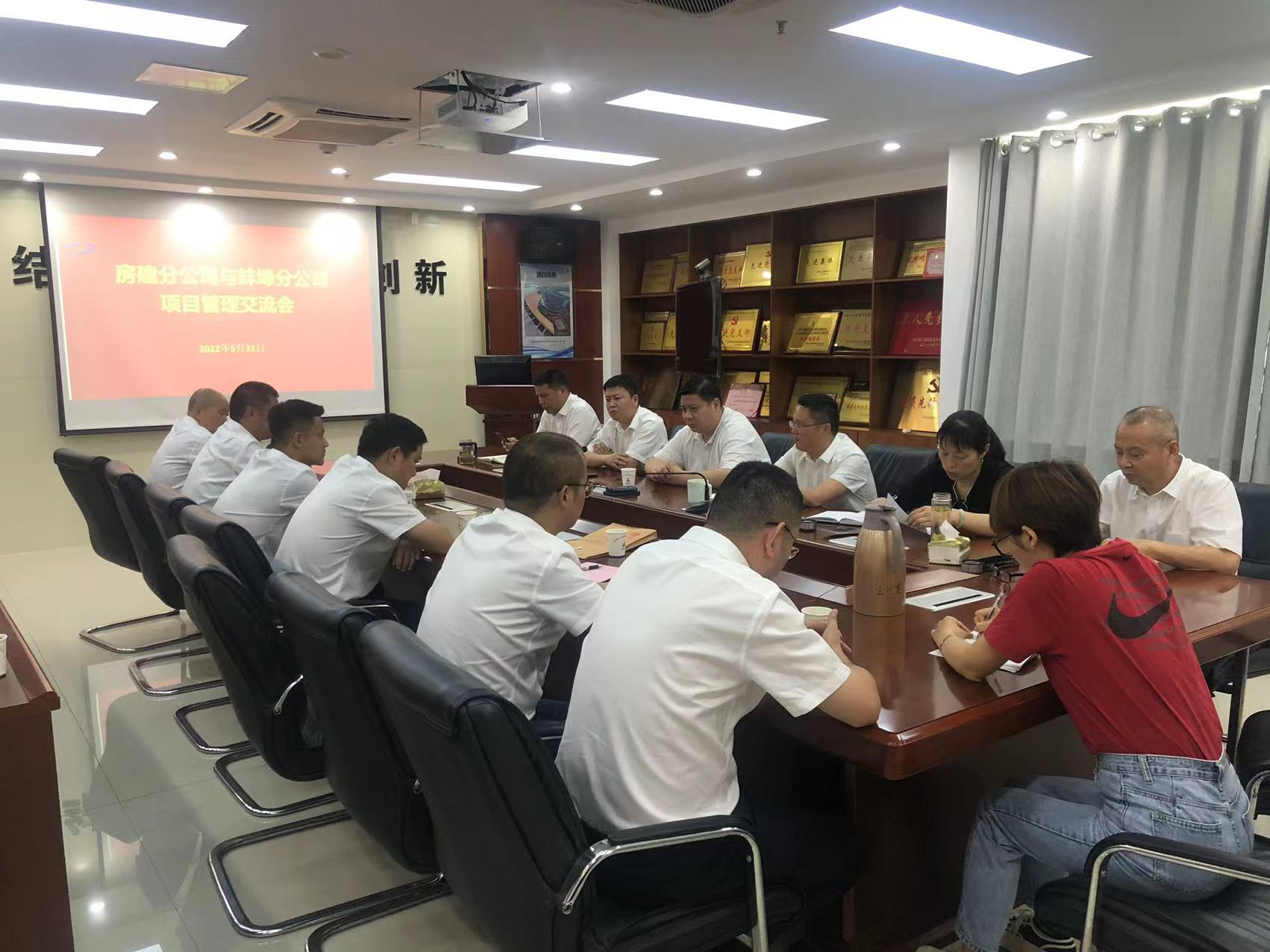 為落實(shí)公司“項目管理年”活動(dòng)要求,進(jìn)一步提升工程項目管理水平,5月31日,房建(裝飾)分公司領(lǐng)導班子帶隊赴蚌埠分公司開(kāi)展項目管理經(jīng)驗交流。房建(裝飾)分公司、蚌埠分公司領(lǐng)導班子,項目經(jīng)理代表、工程管理部門(mén)有關(guān)人員代表參加了交流會(huì )。