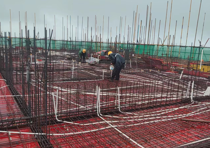 圖為舒城青墩小區項目高層住宅及地庫的水電及消防工程安裝工程正在搶抓管線(xiàn)預埋。