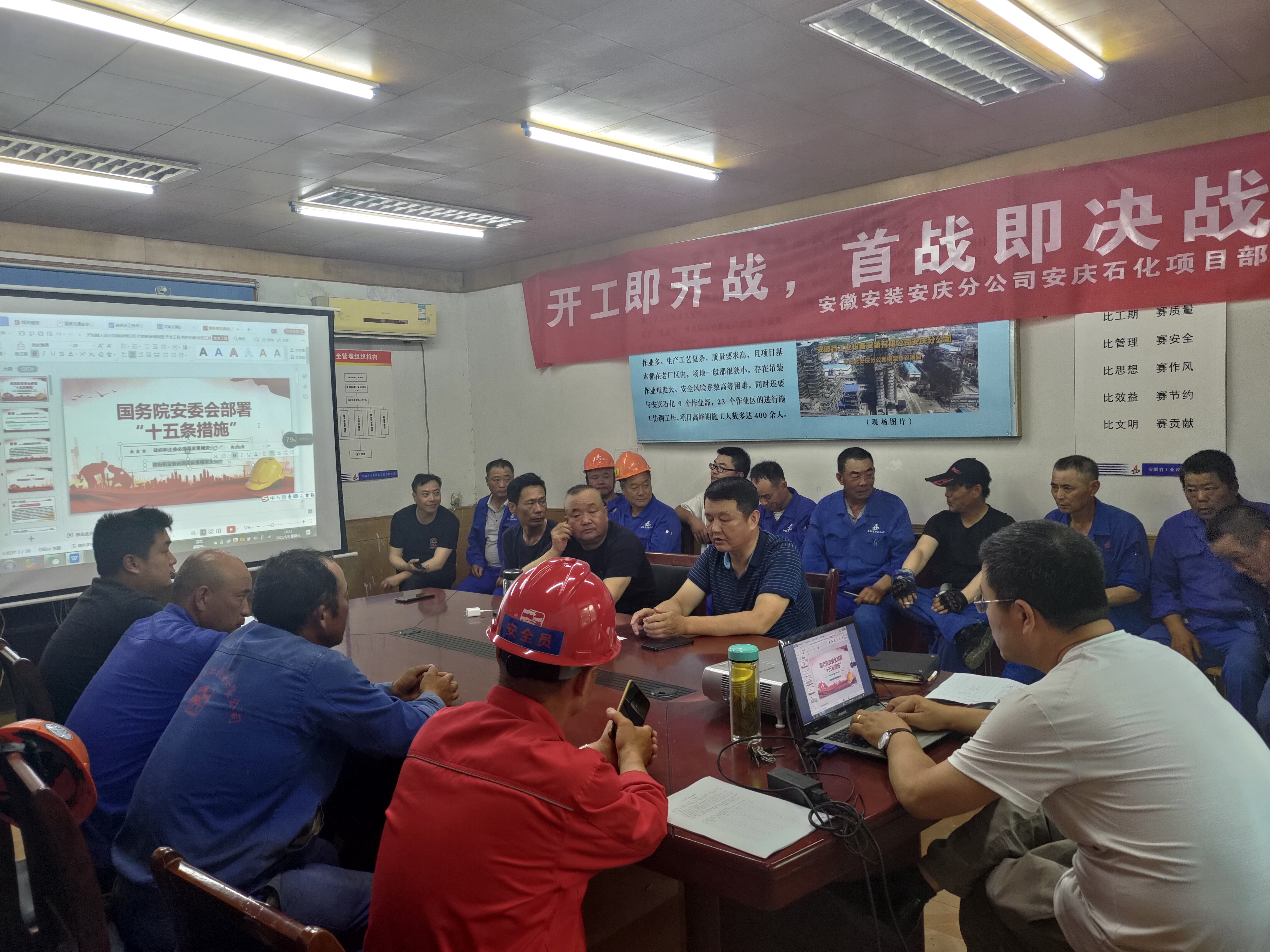 6月8日,在安慶石化項目部開(kāi)展安全月集中宣講、培訓輔導活動(dòng),結合項目特點(diǎn),對國務(wù)院十五條措施、新安全生產(chǎn)法、安慶石化交通安全、7+1直接作業(yè)環(huán)節管控等進(jìn)行講座。