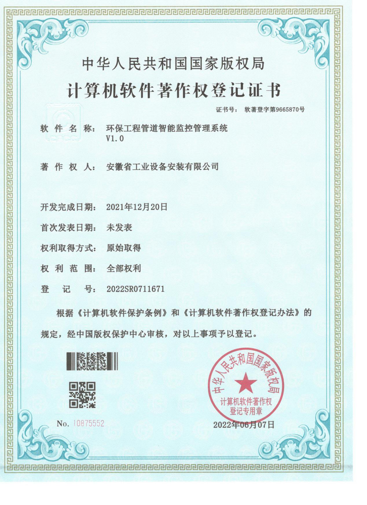 近日,經(jīng)國家版權局審核批準,安徽安裝公司申報的《環(huán)保工程管道智能監控管理系統V1.0》喜獲計算機軟件著(zhù)作權登記證書(shū),這標志著(zhù)公司在數字與信息化發(fā)展上實(shí)現新突破、邁上新臺階,開(kāi)啟了數字化轉型新征程。