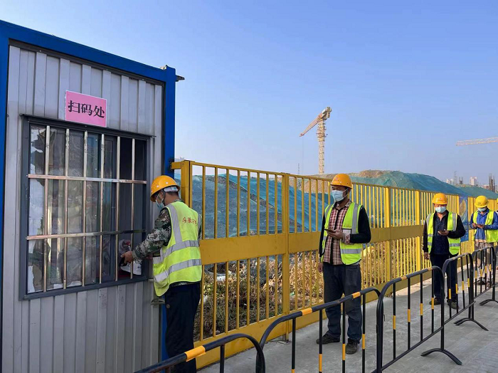 工地人員流動(dòng)性大、作業(yè)聚集,是疫情防控的重點(diǎn)領(lǐng)域,為此該項目施工現場(chǎng)嚴格實(shí)施全封閉管理,貫徹執行全員兩點(diǎn)一線(xiàn)的工作要求。項目部多次進(jìn)行疫情防控教育交底,工地實(shí)行管理人員值班制度,監督工人上下班戴好口罩、掃二碼、測體溫,人員登記,排隊時(shí)必須保持1米以上間距。晚間對各宿舍進(jìn)行巡查,避免出現隨意串門(mén)、聚集扎堆等現象。以上措施形成巡檢機制,堅決落實(shí)疫情防控常態(tài)化管理。