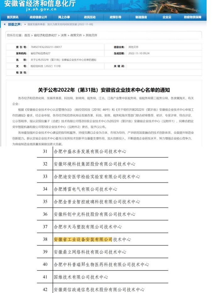 喜訊丨安徽安裝榮獲“安徽省省級企業(yè)技術(shù)中心”稱(chēng)號