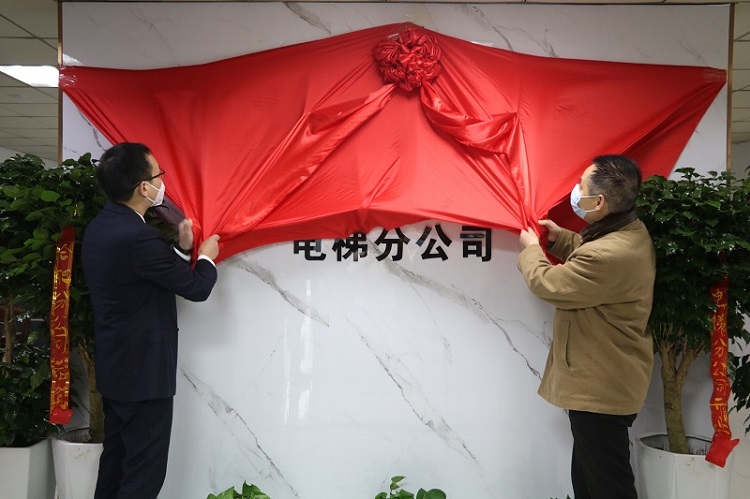 黨委書(shū)記、董事長(cháng)胡六中和電梯分公司經(jīng)理龍海健共同揭牌