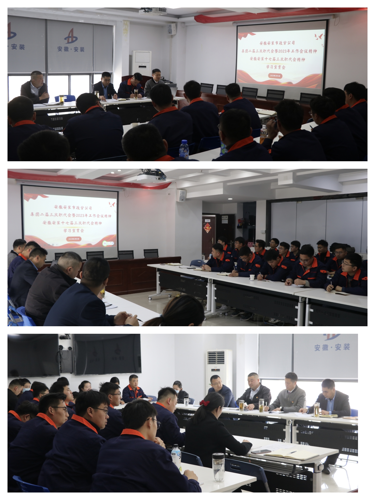 會(huì )上,分公司副經(jīng)理黃彥濤首先傳達學(xué)習了建工控股黨委書(shū)記、董事長(cháng)楊善斌作的題為《全面貫徹落實(shí)黨的二十大精神,改革創(chuàng )新、勇毅前行,爭當中國建筑企業(yè)排頭兵》的總結講話(huà)精神,黨委副書(shū)記、總經(jīng)理、董事劉家靜作的題為《拉高標桿、踔厲奮發(fā)、改革創(chuàng )新、提質(zhì)增效,為爭當中國建筑企業(yè)排頭兵而團結奮斗》的工作報告;隨后,胡迎東傳達學(xué)習了公司黨委書(shū)記、董事長(cháng)胡六中作的題為《初心如磐踔厲奮發(fā)行而不輟未來(lái)可期以實(shí)干作風(fēng)按下安徽安裝高質(zhì)量發(fā)展“加速鍵”》工作報告和題為《深入學(xué)習貫徹黨的二十大精神為安徽安裝高質(zhì)量發(fā)展新征程領(lǐng)航掌舵》的講話(huà)精神,讓大家對集團和公司在2022年取得的成績(jì)以及2023年的形勢和任務(wù)都有了深刻的理解和認識。
