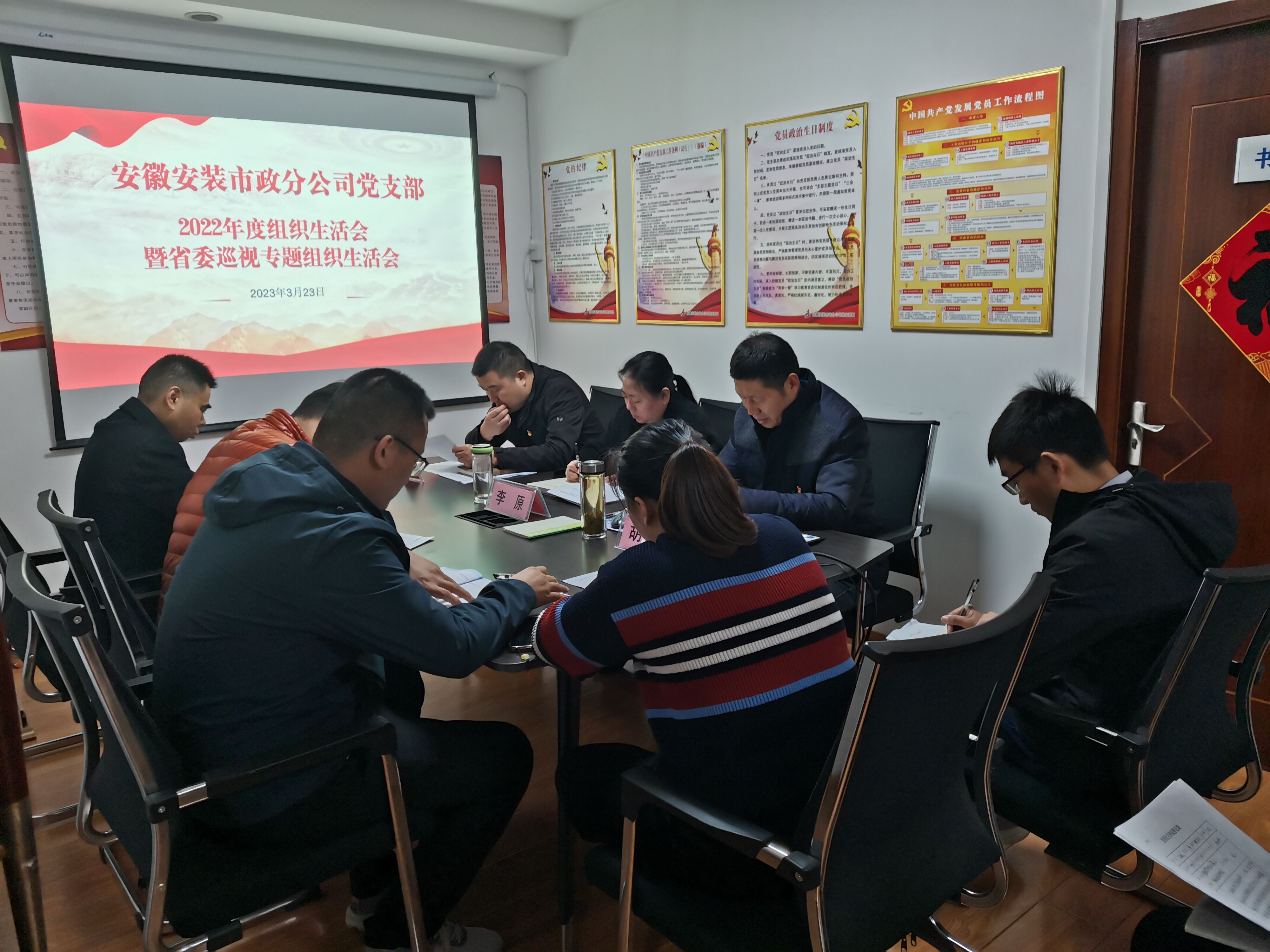 3月23日上午,市政分公司黨支部在分公司會(huì )議室召開(kāi)2022年度組織生活會(huì )暨省委巡視專(zhuān)題組織生活會(huì ),公司副總經(jīng)理李原應邀出席,分公司領(lǐng)導班子成員、全體黨員、入黨積極分子參加會(huì )議,黨支部書(shū)記胡迎東主持會(huì )議。