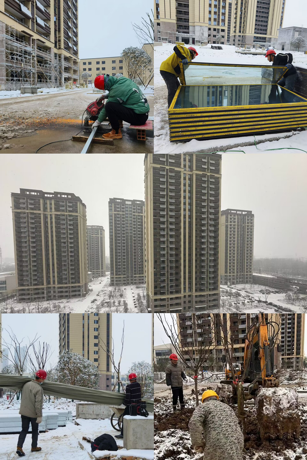 在安徽理工大學(xué)(合肥高等研究院)維修改造項目(二期)施工現場(chǎng),肆虐的雪花紛紛揚揚飄落,凜冽的寒風(fēng)一陣陣刮過(guò)。為確保項目生產(chǎn)正常進(jìn)行,項目部全體人員不畏嚴寒,齊心協(xié)力破雪除冰,及時(shí)消除安全隱患;同時(shí),項目部還加強現場(chǎng)管理、強化生產(chǎn)安全防護、嚴密監控天氣變化,為確保工程進(jìn)度和質(zhì)量有序推進(jìn)保駕護航。